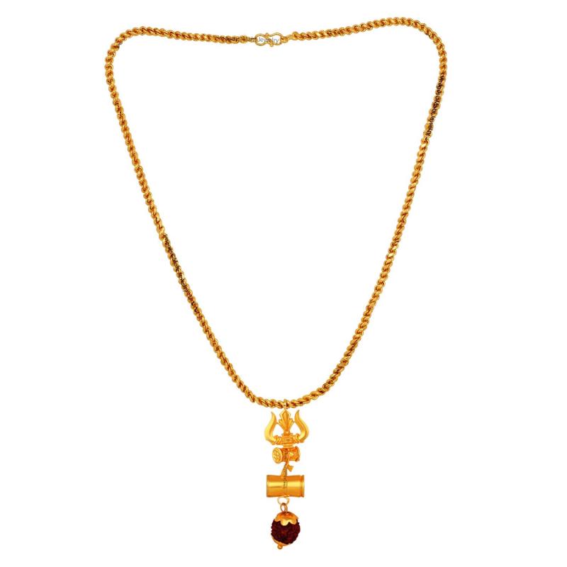 This religious pendant features Lord Shiva's Trishul and Damru design. Comes with a 20 inch chain for easy wear.