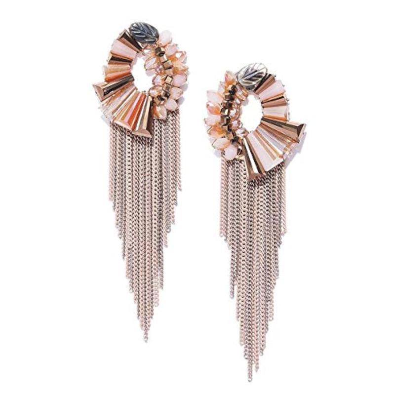Elevate your style with these mesmerizing tassel earrings. Luxurious 18K rose plating adds a touch of elegance to any outfit.