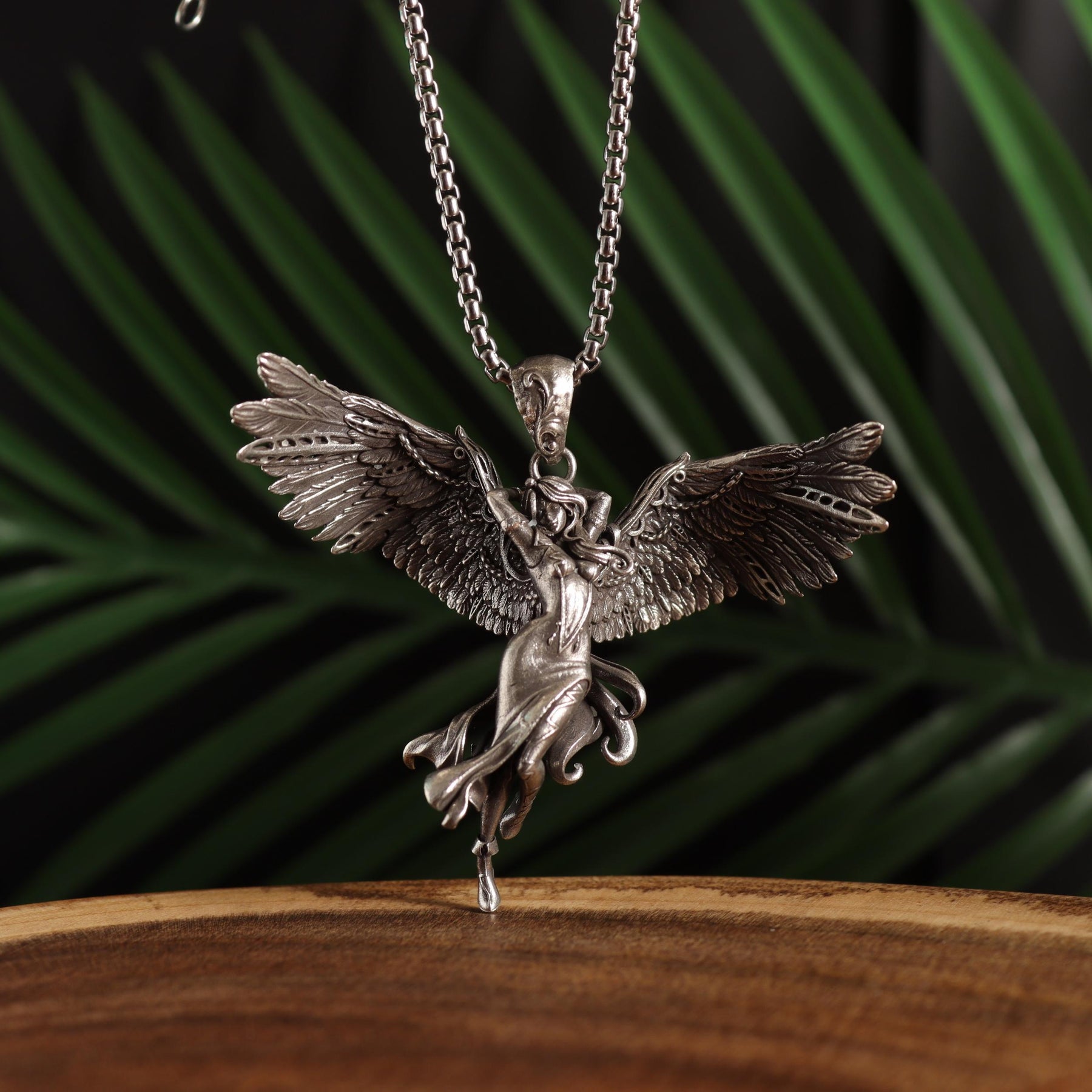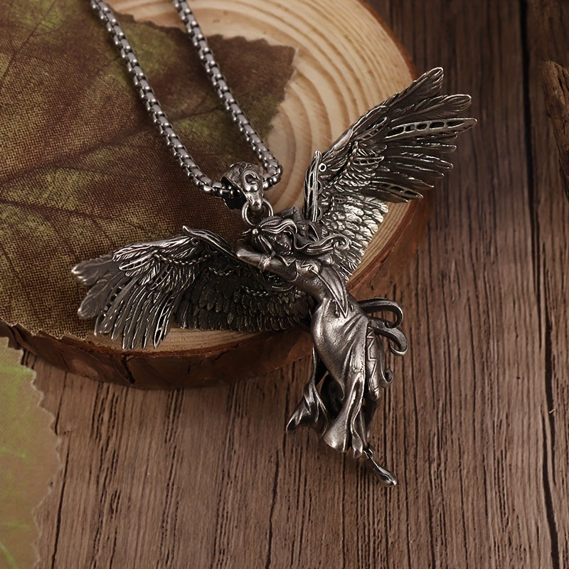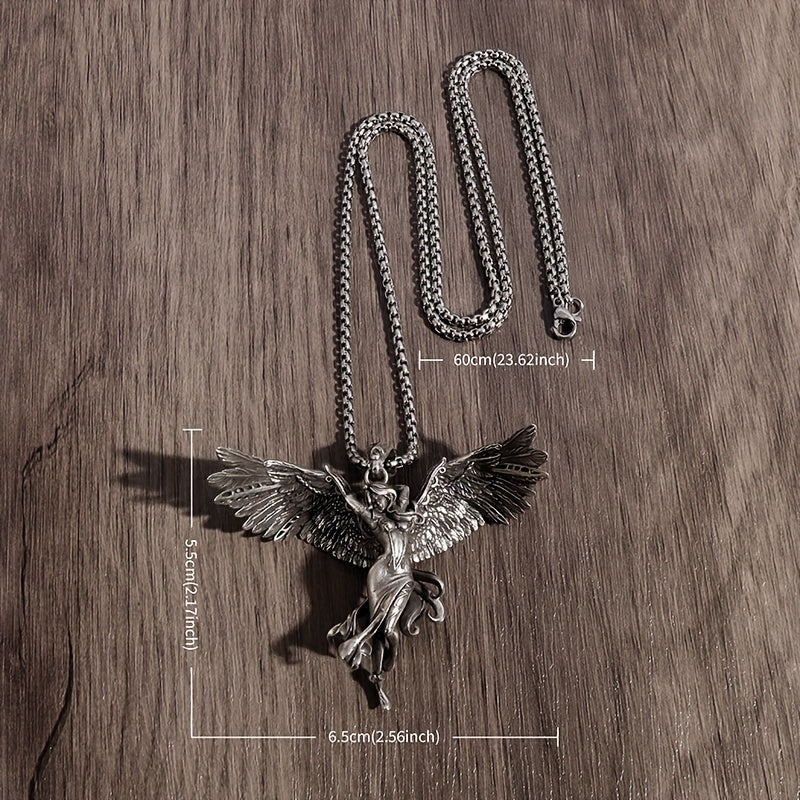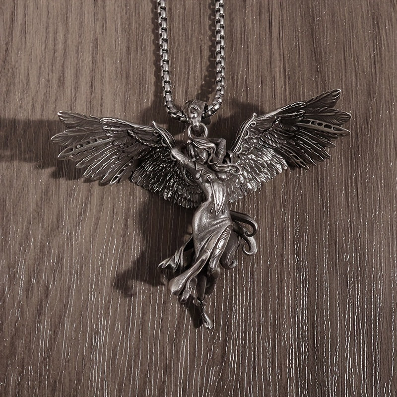 This unique pendant necklace features a retro silver angel goddess design that serves as a lucky amulet for daily wear. It makes a perfect gift for men.
