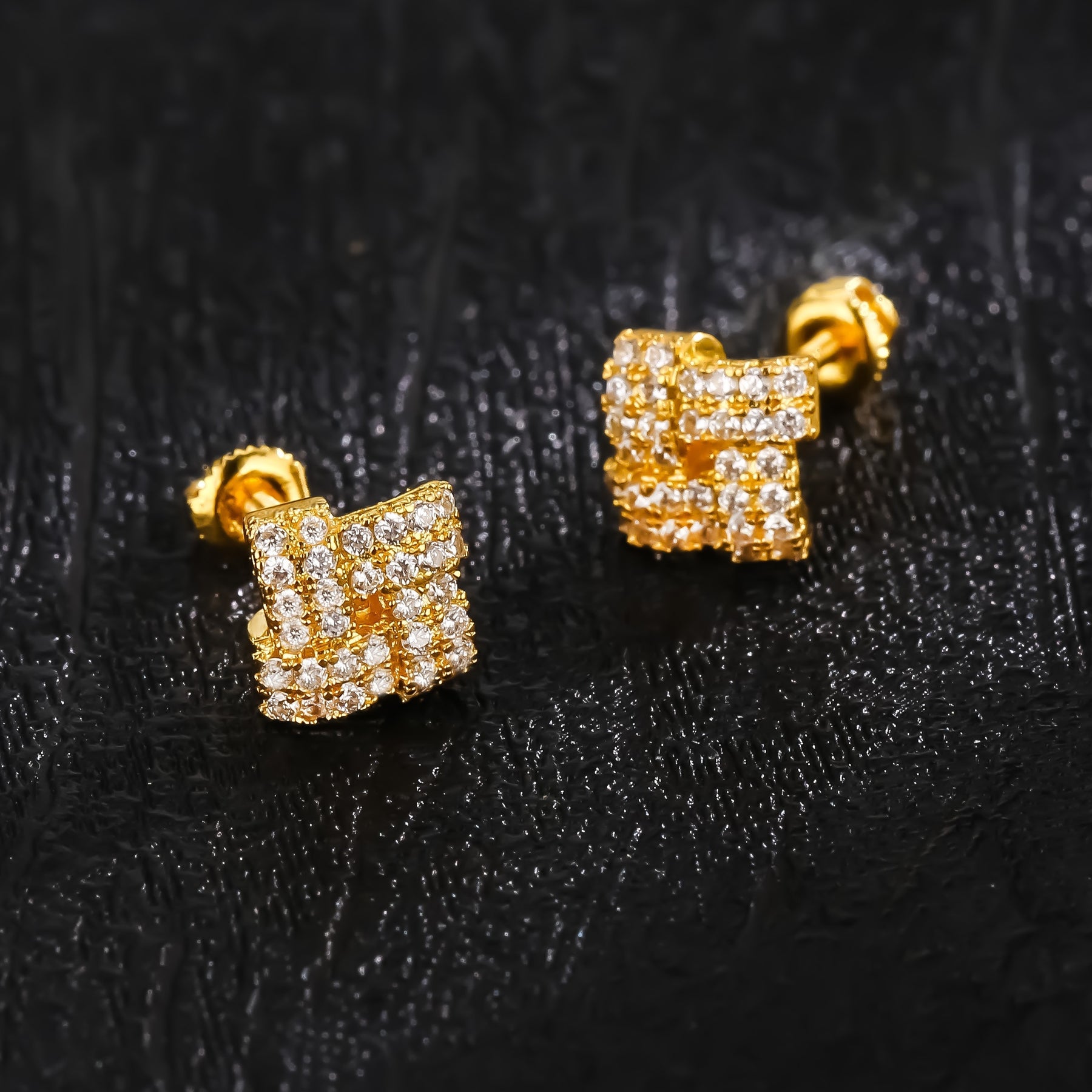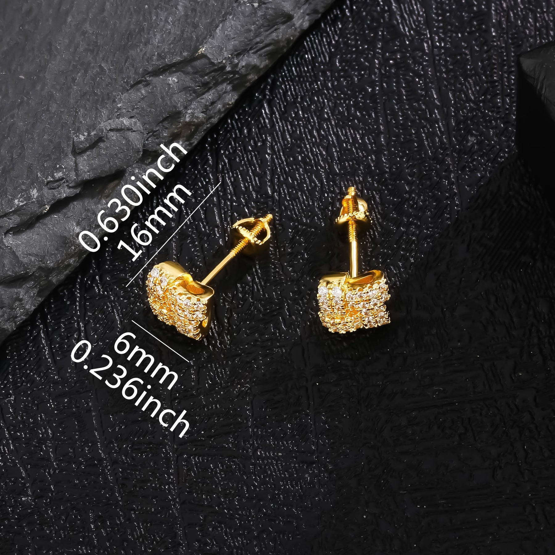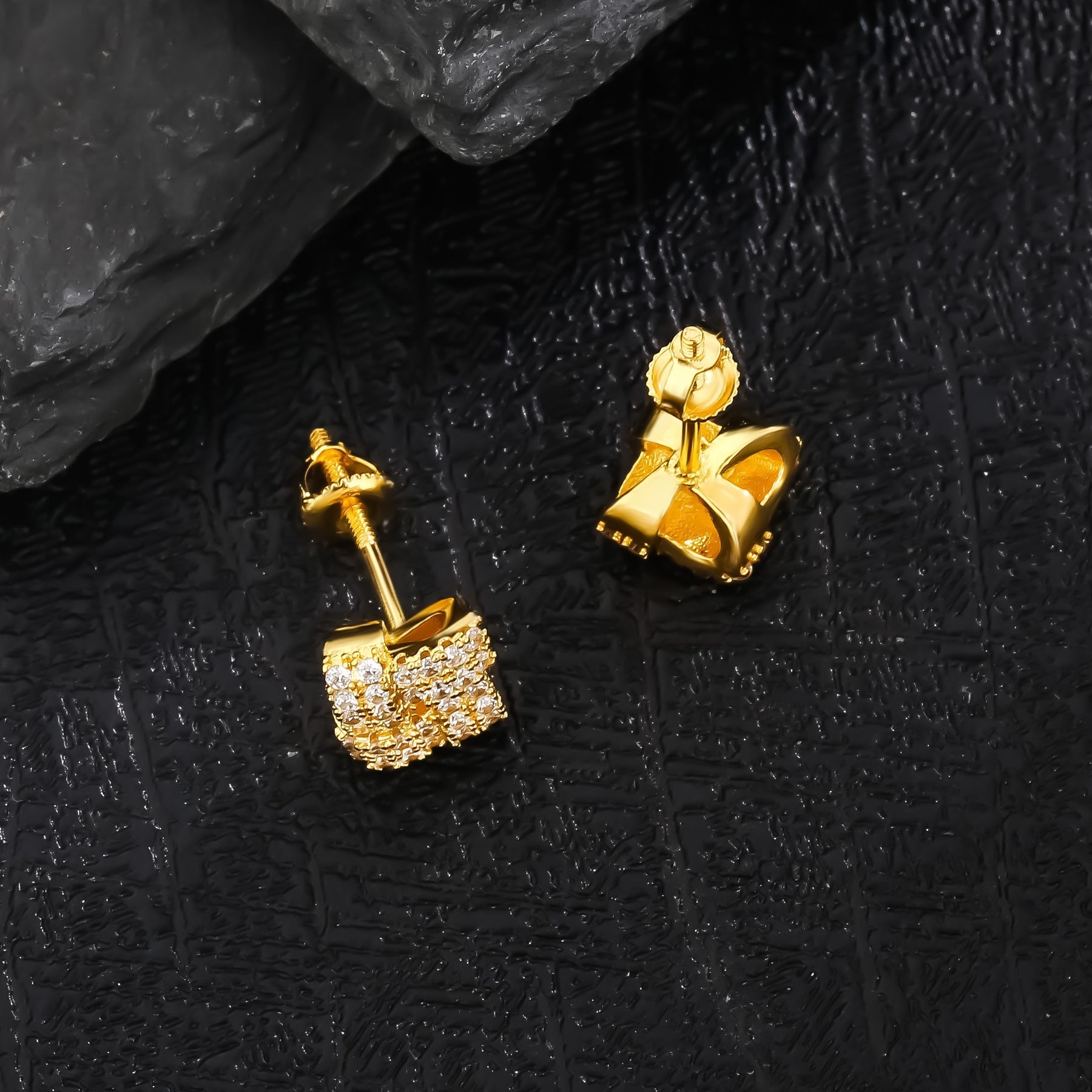 Men's 14K Gold Plated Hip Hop Zirconia Square Stud Earrings
