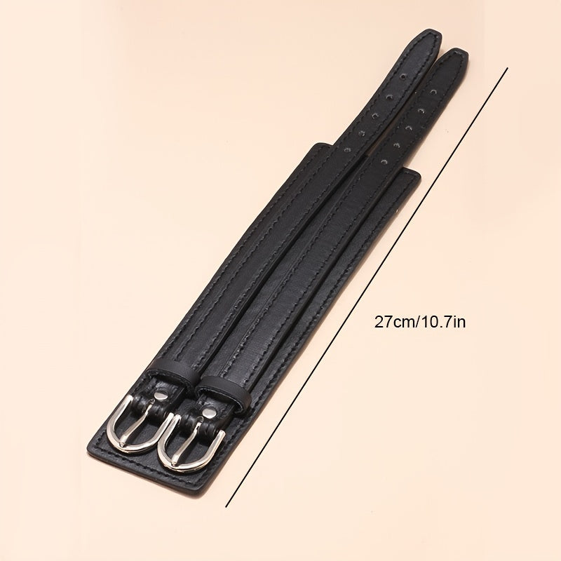 Enhance your punk style with this adjustable classic bracelet made of high-quality PU leather. The double buckle design adds a unique touch to your look.