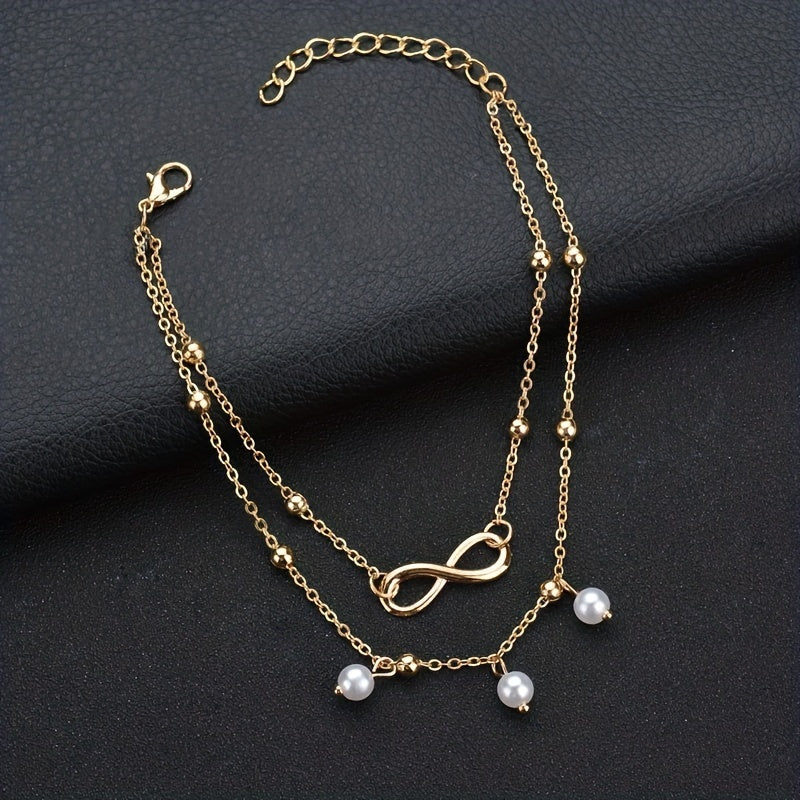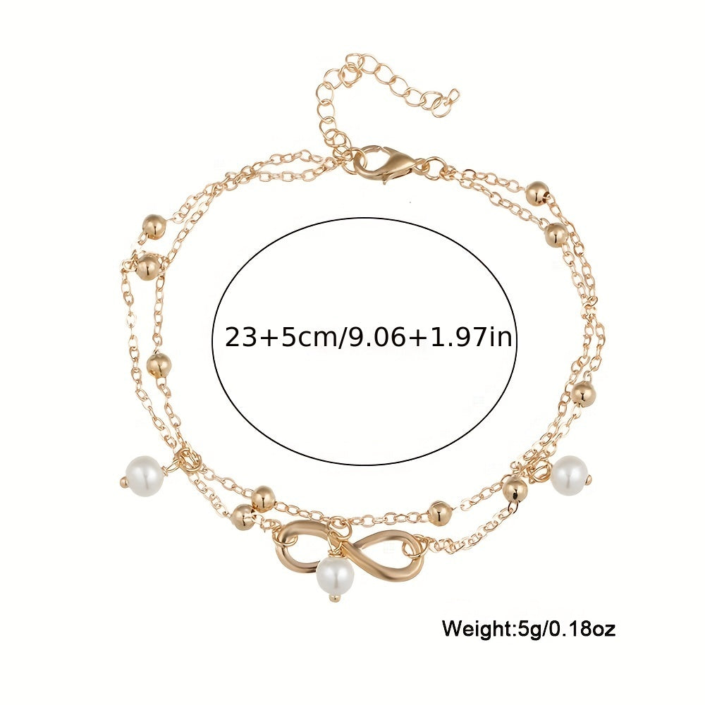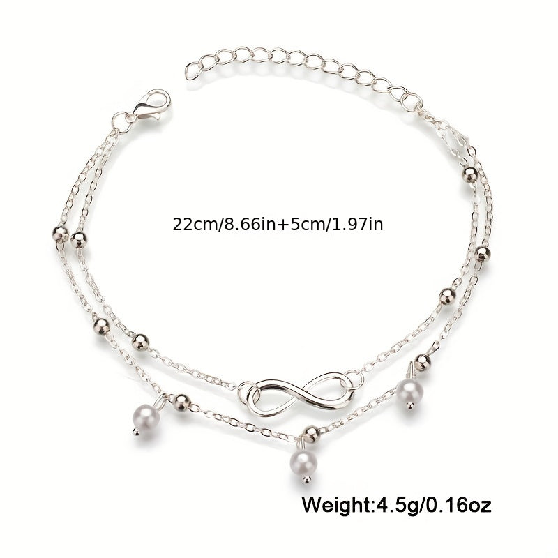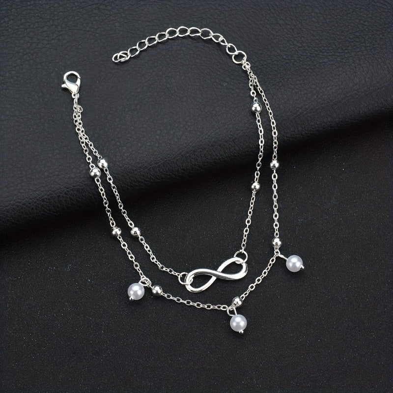 Elevate your summer look with this stylish double layer anklet featuring an 8 shape design and a pearl accent. Perfect for both men and women.