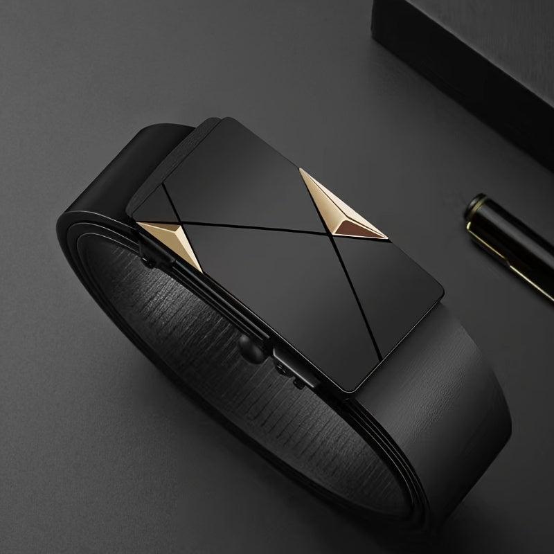 Elevate your style with this stylish faux leather belt featuring a geometric buckle. Suitable for casual, business, and formal occasions. Durable and versatile for all your outfit needs.