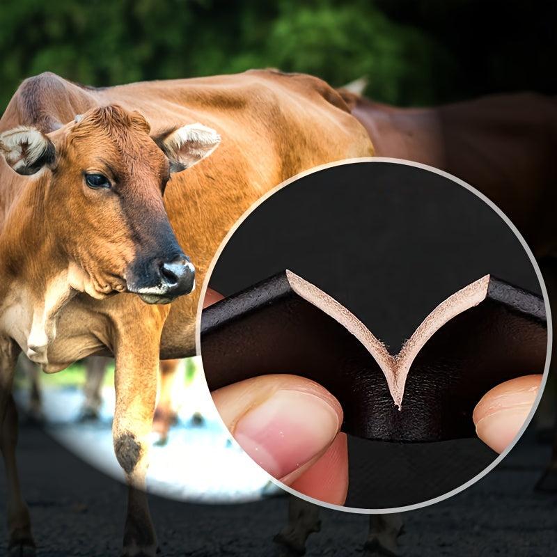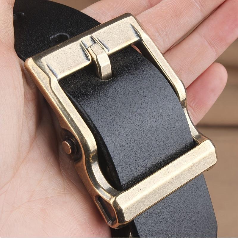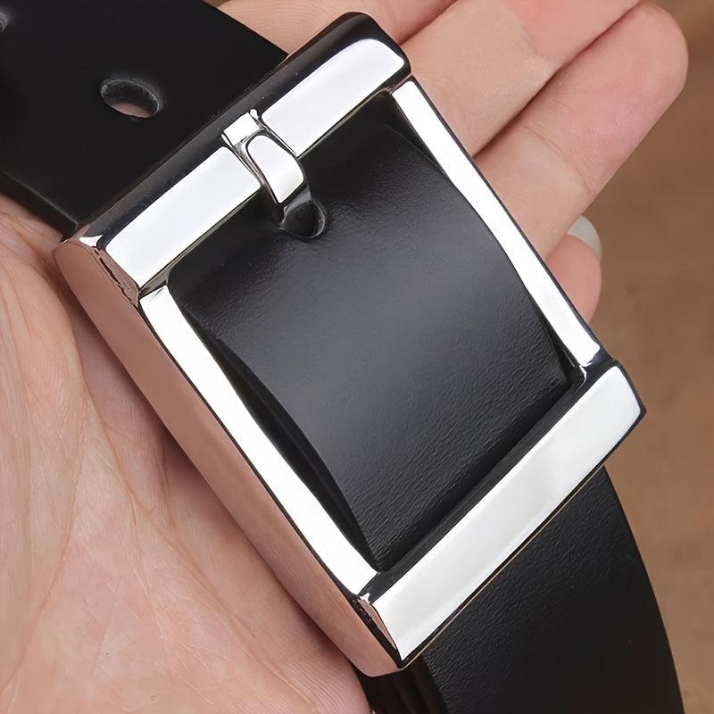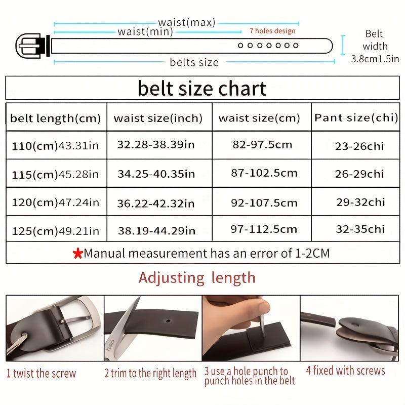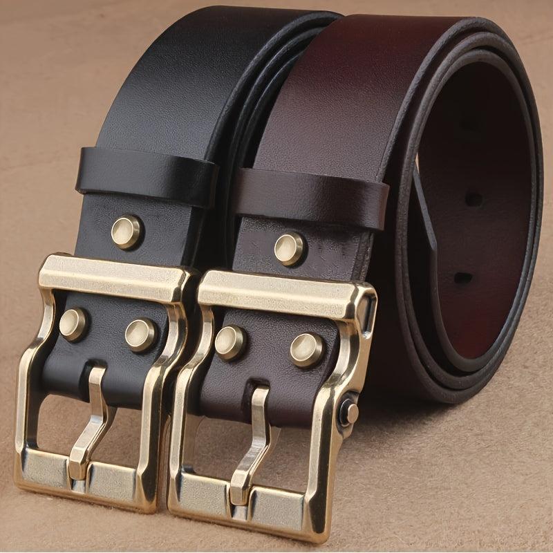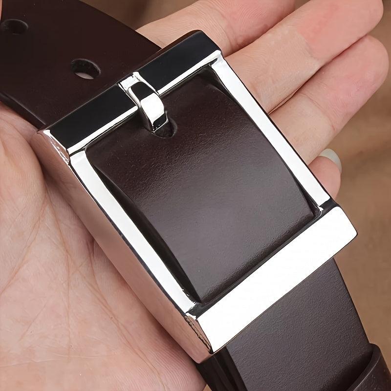 This durable men's leather belt features a smooth finish and stylish design. Made from top-grain leather, it is available in black or brown options with a 3" width.