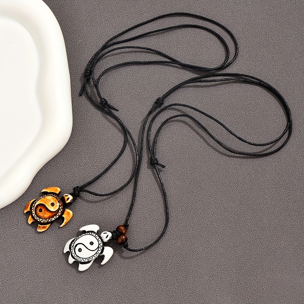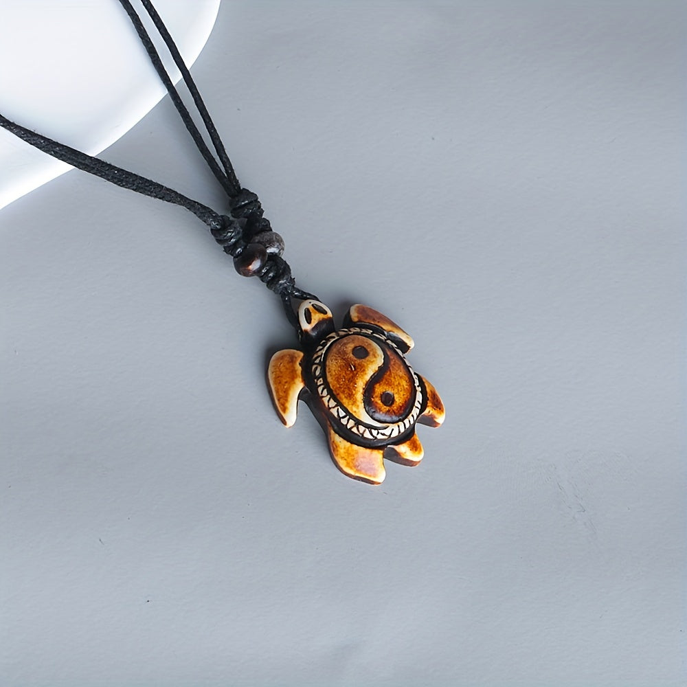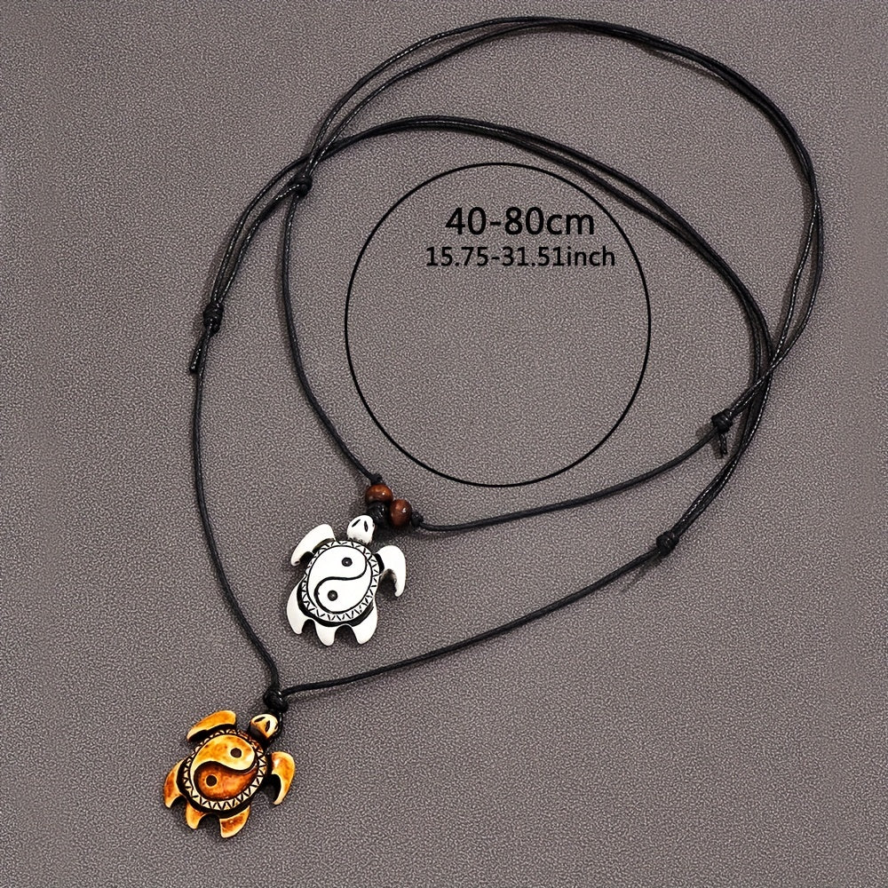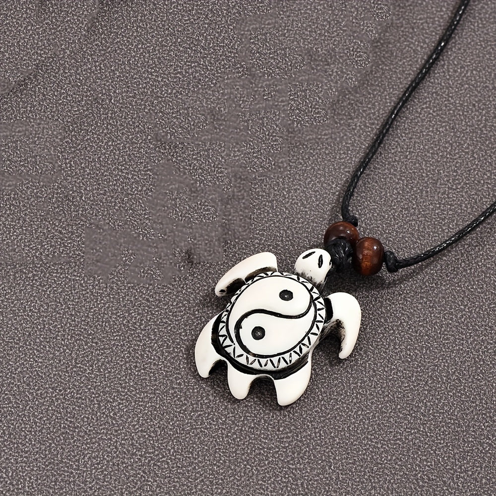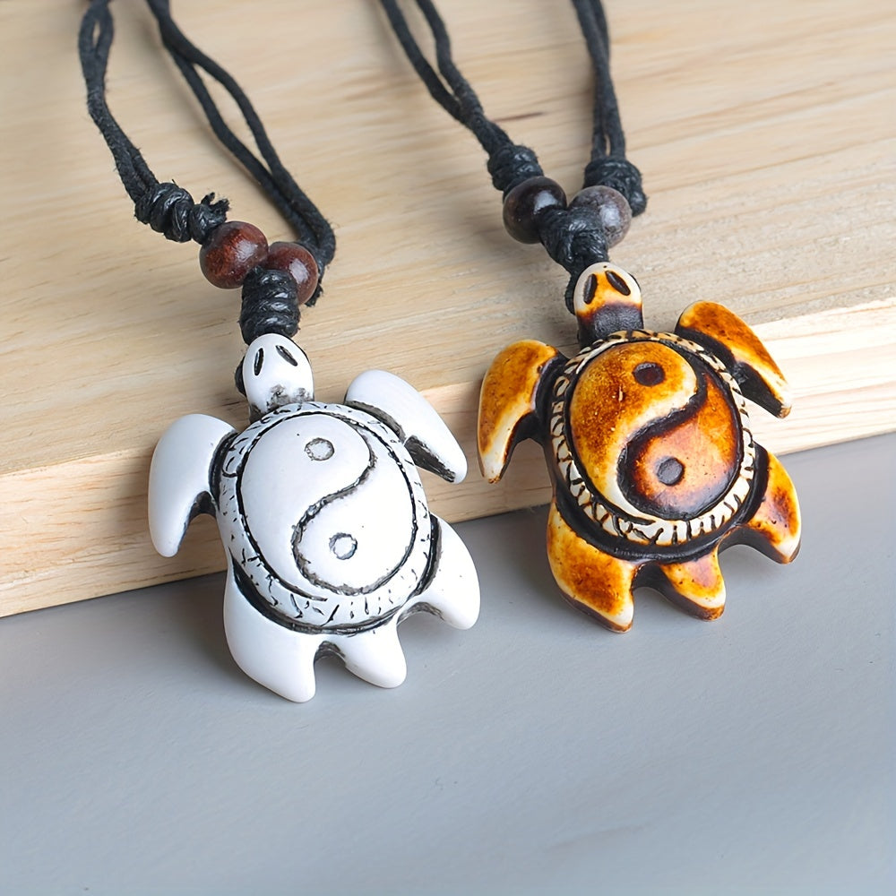 This vintage pendant necklace features a versatile retractable resin Tai Chi turtle pattern pendant. It is a stylish and casual jewelry accessory that makes a great gift.