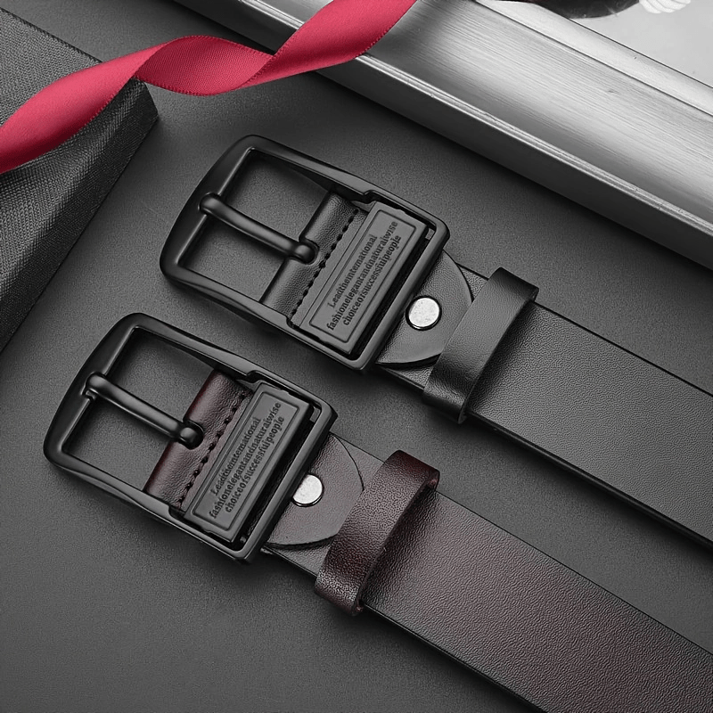 Upgrade your style with this durable PU leather belt featuring a vintage buckle. It offers a soft texture suitable for both casual and business attire.