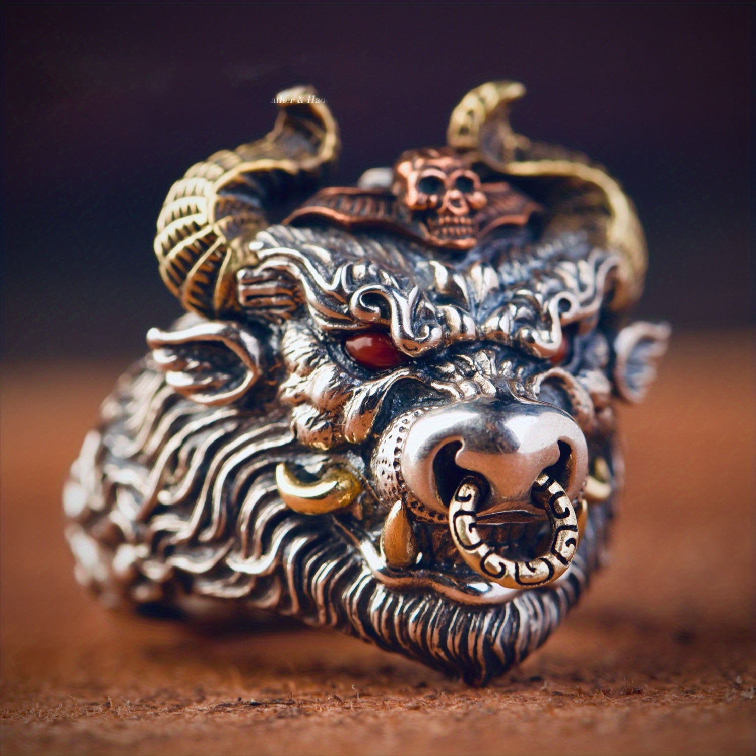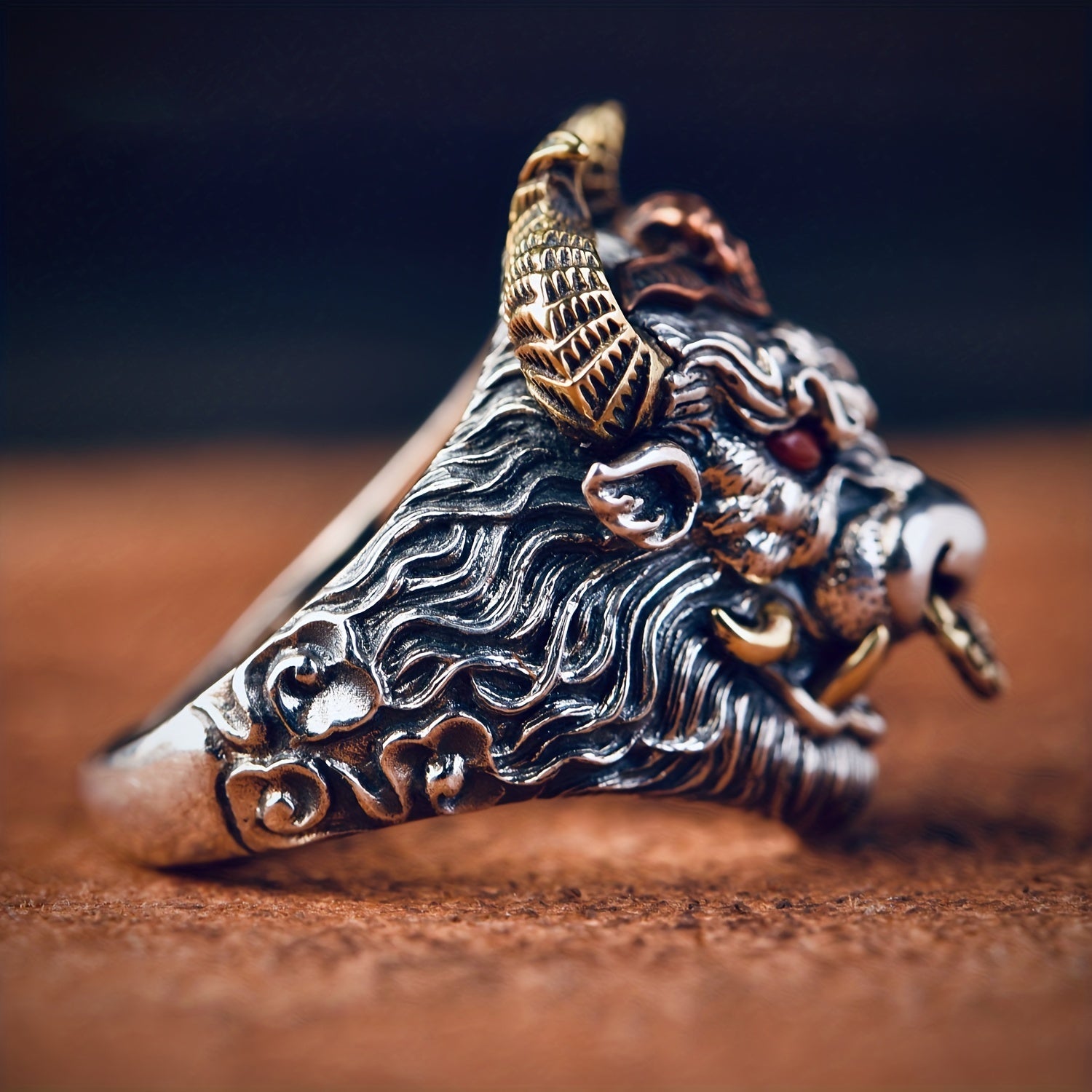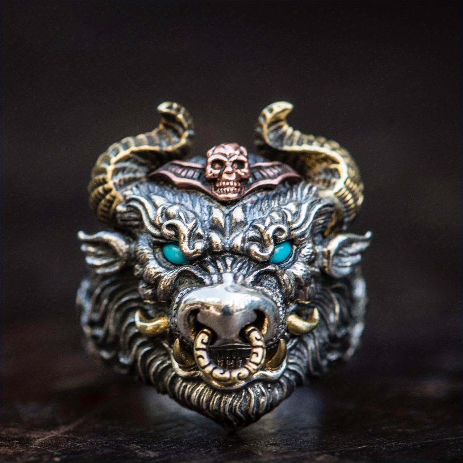 Add a touch of domineering style with this vintage devil bull head ring. Adjustable opening design makes it a great gift for men.