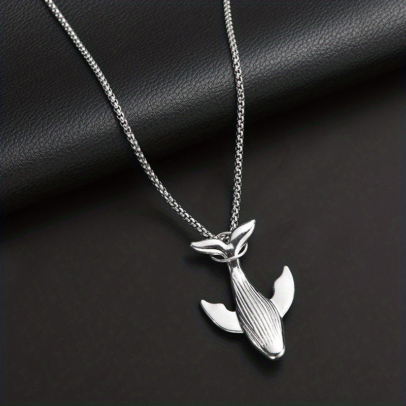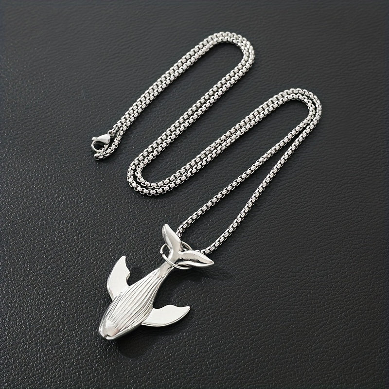 This necklace is designed for men and features a whale pendant. It is a stylish accessory that can be worn for various occasions.