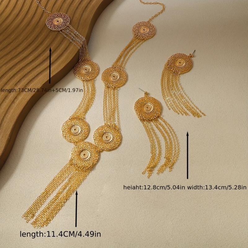This 2-piece jewelry set features an exaggerated design with three-dimensional hollow round carving. Perfect for parties and special occasions.