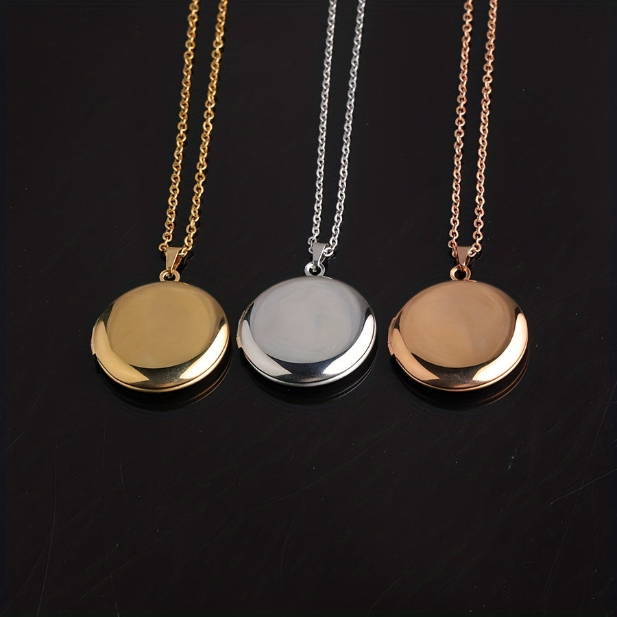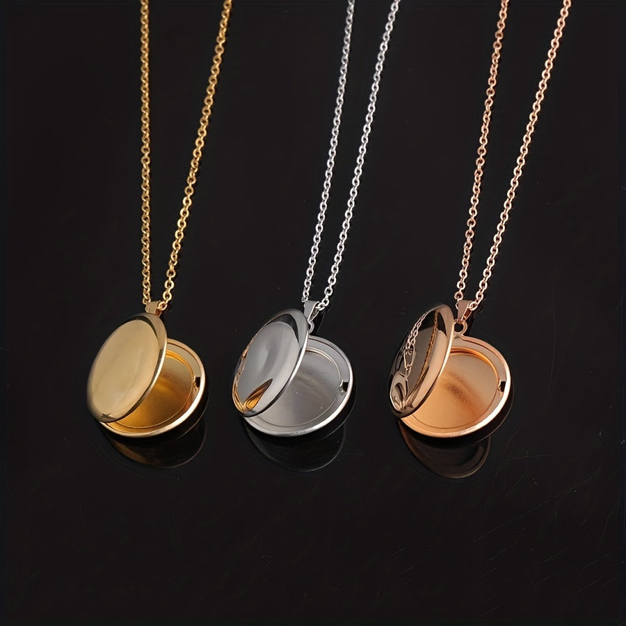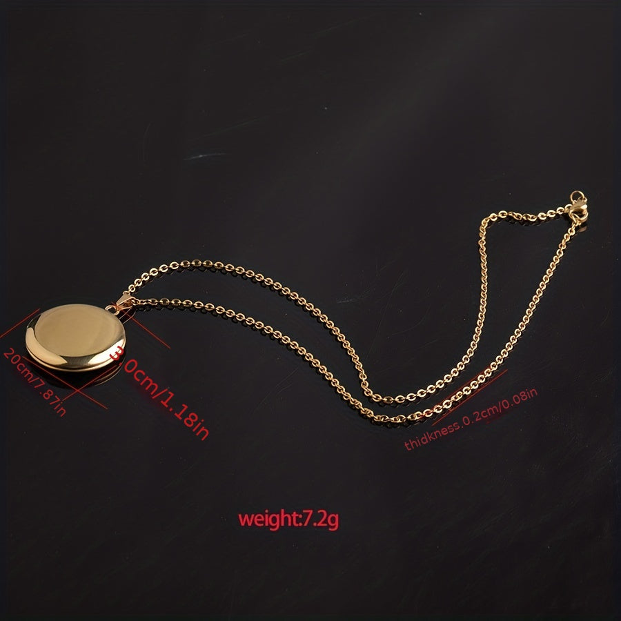 This creative necklace features a glossy round photo box pendant that can be opened to showcase your favorite photos. It is a stylish and decorative accessory for any outfit.