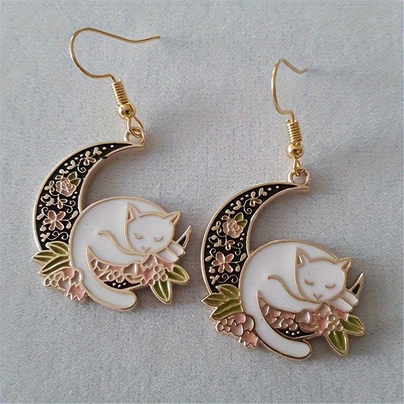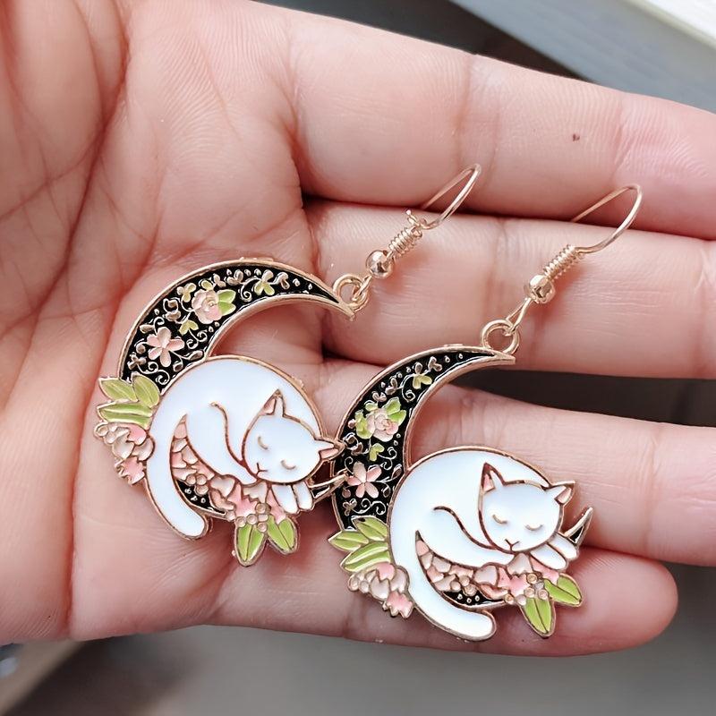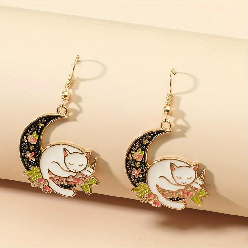 Add a touch of charm to your outfit with these moon and cat hug dangle earrings, perfect for parties and special occasions.
