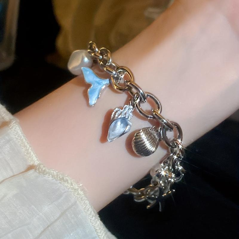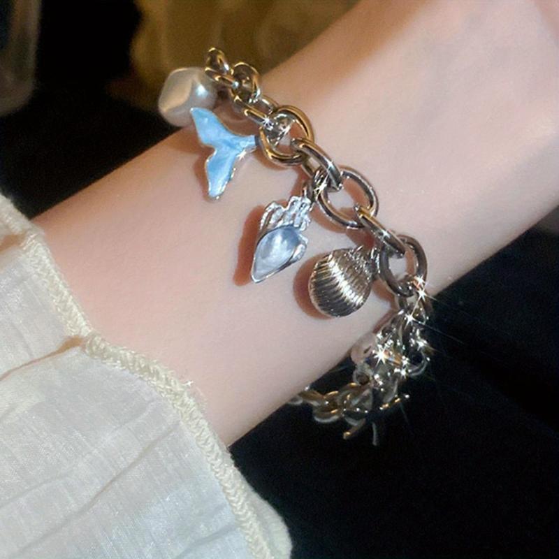 Ocean Inspired Charm Bracelet with Pearl & Rhinestone Accents