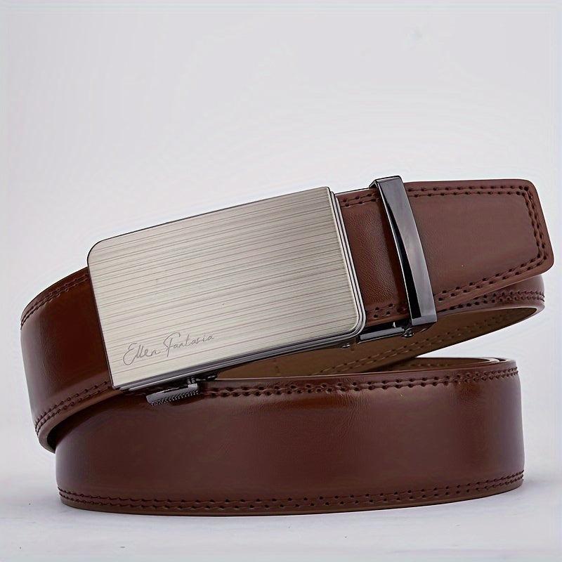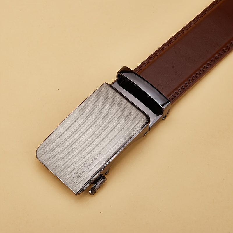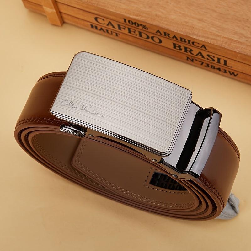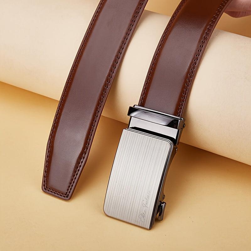 This men's leather belt is made from cowhide with an automatic alloy buckle, perfect for business or casual wear.