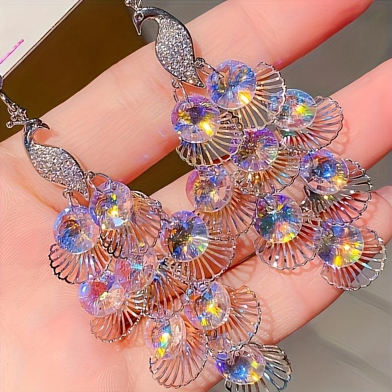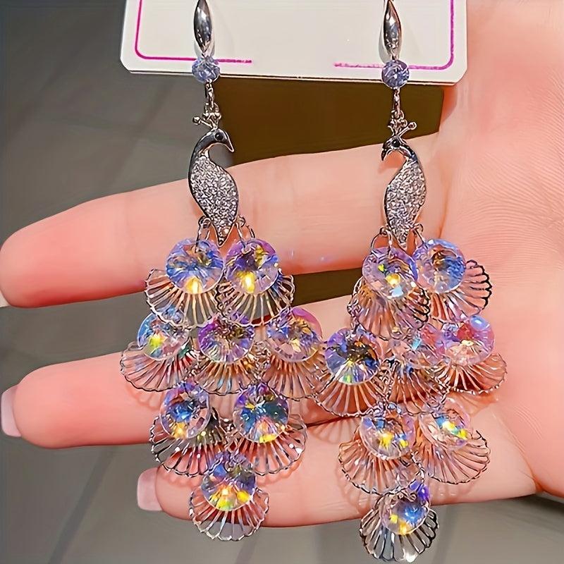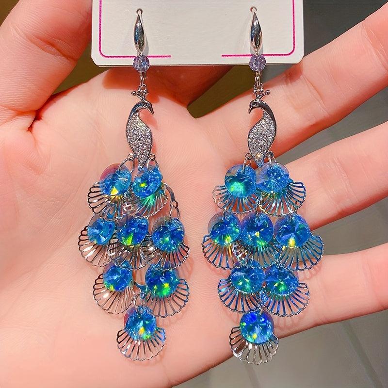 Adorn your ears with these elegant peacock pendant earrings featuring intricate hollow leaf tassels. Perfect for adding a touch of nature-inspired beauty to your outfit.