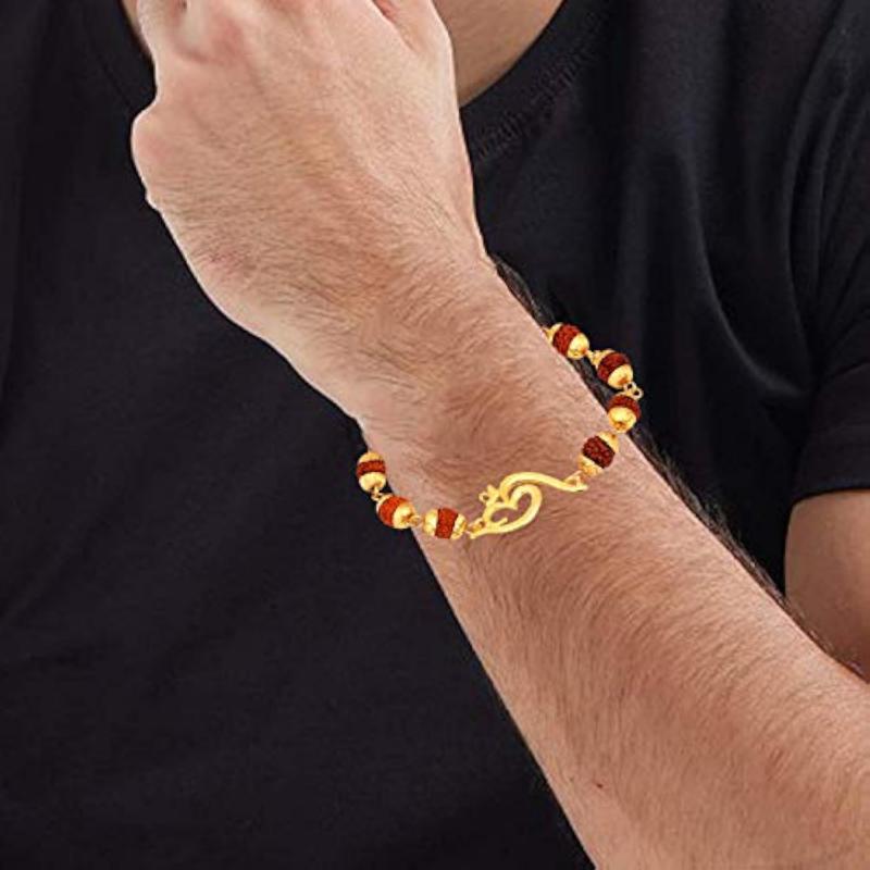 This Rakhi features a plated Divine Om Rudraksha design, perfect for religious occasions.