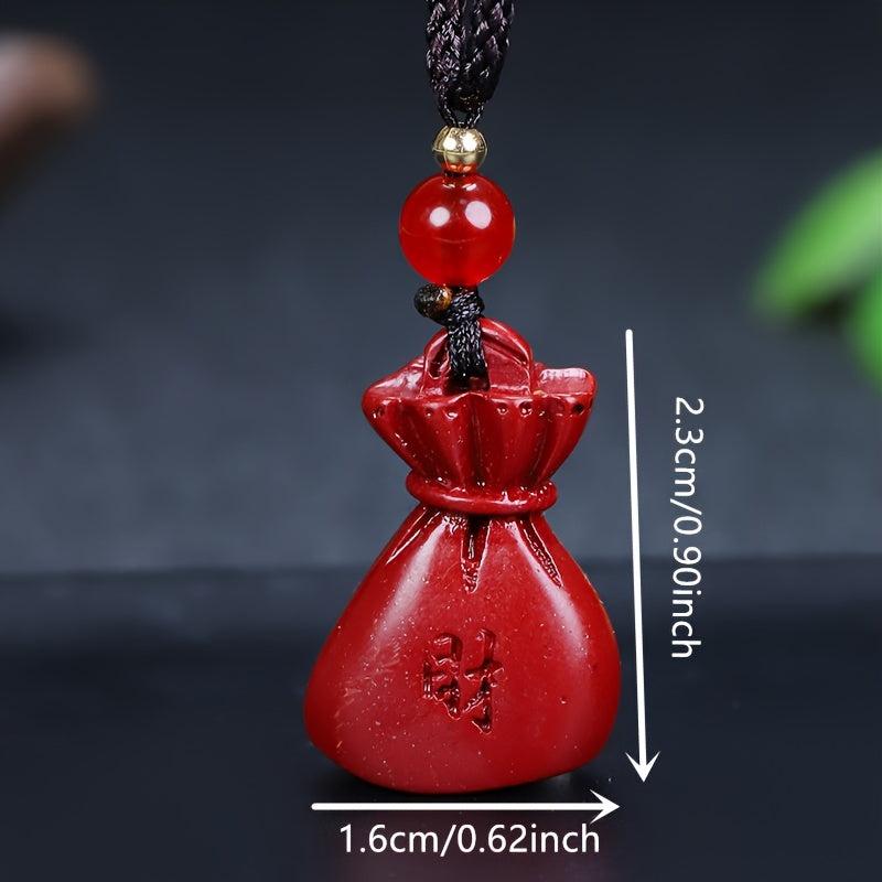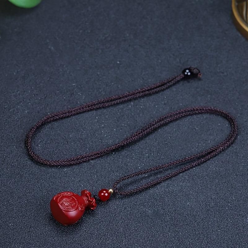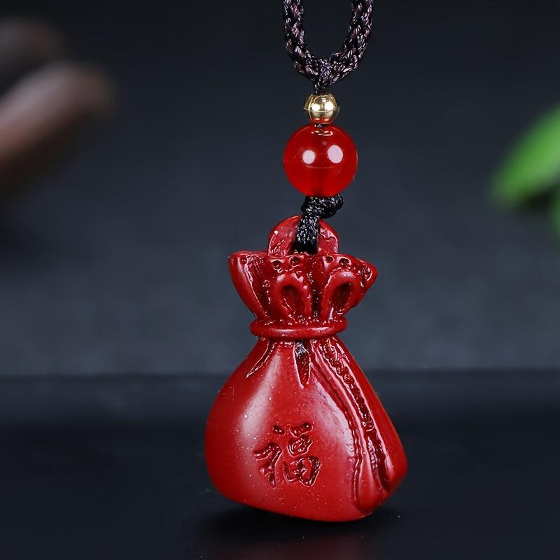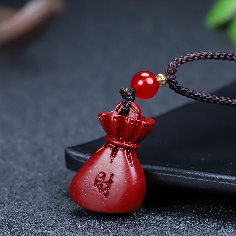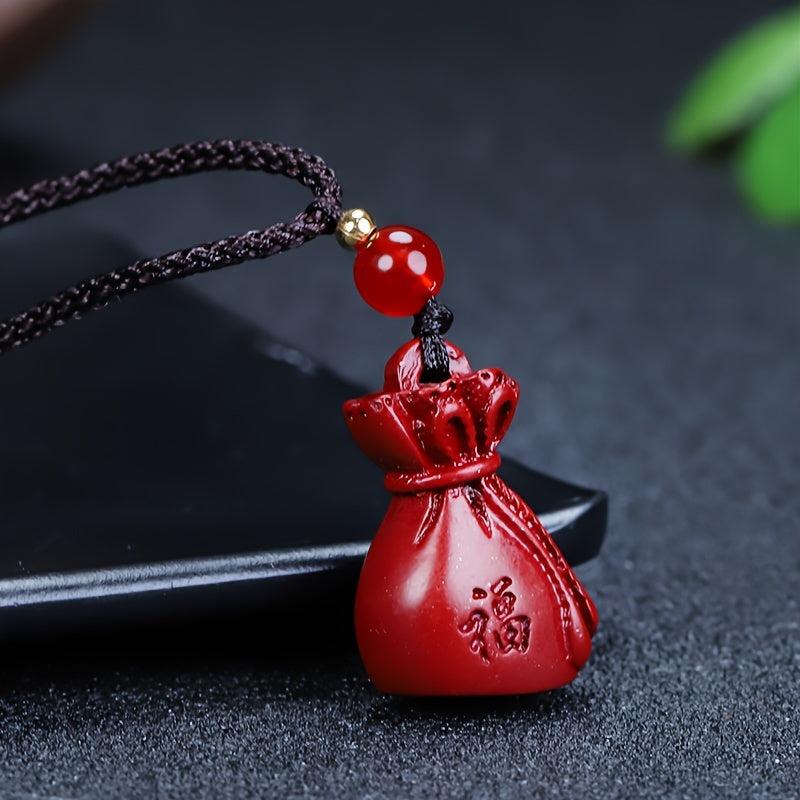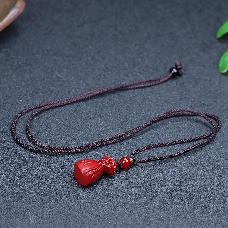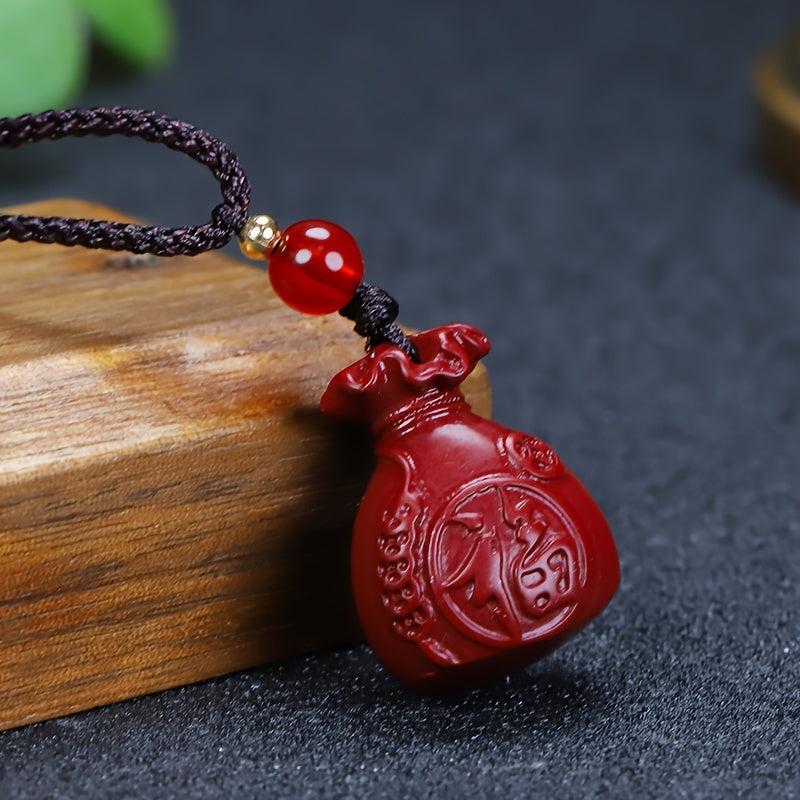This red cinnabar pendant necklace is a symbol of wealth and good luck. It features a money bag design, perfect for both men and women.