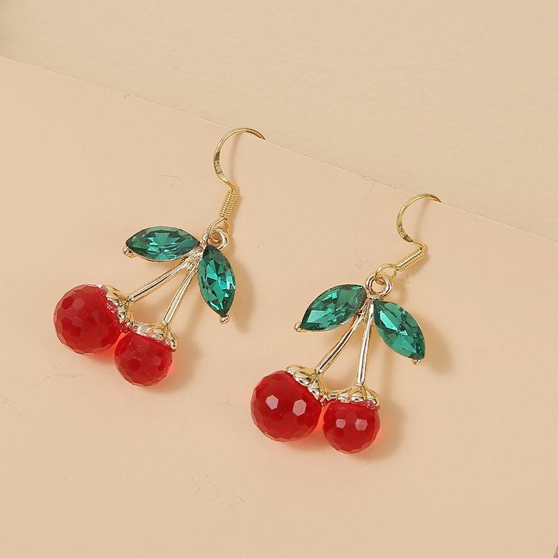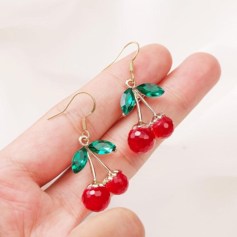 Add a touch of charm to your look with these red crystal cherry drop dangle earrings. Perfect as a gift for women who love unique jewelry.