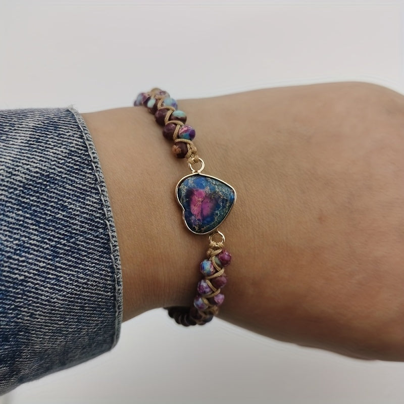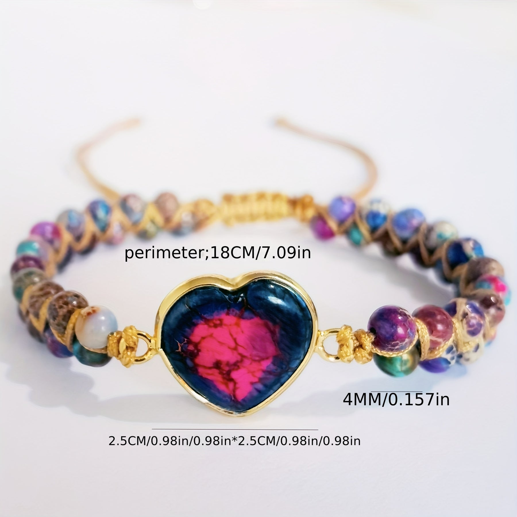 Elegant and charming red imperial stone bracelet with a peach heart design, symbolizing love. Handcrafted braided bracelet perfect for adding a touch of style to your outfit.