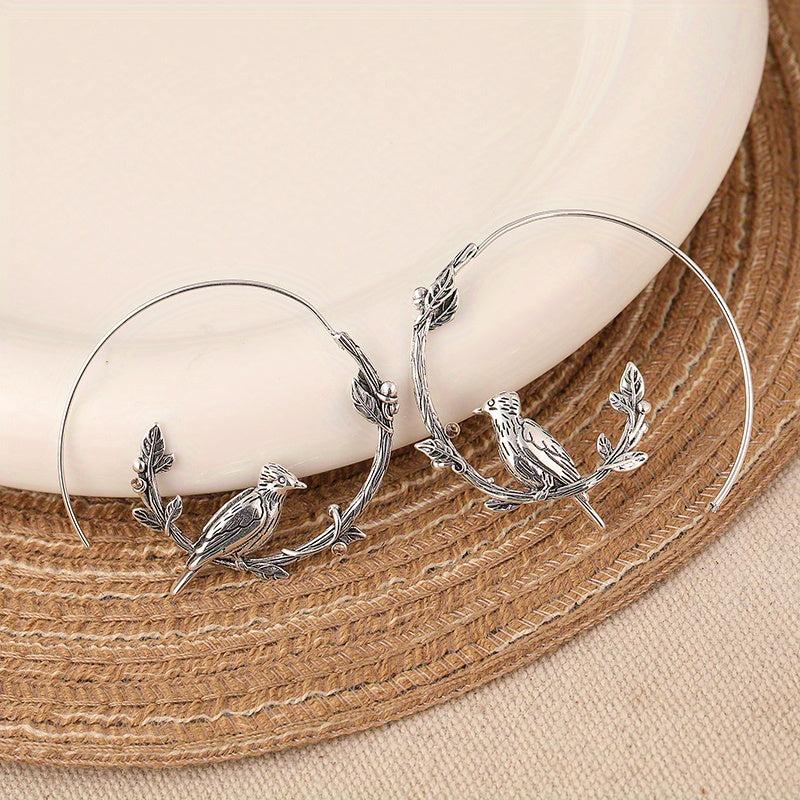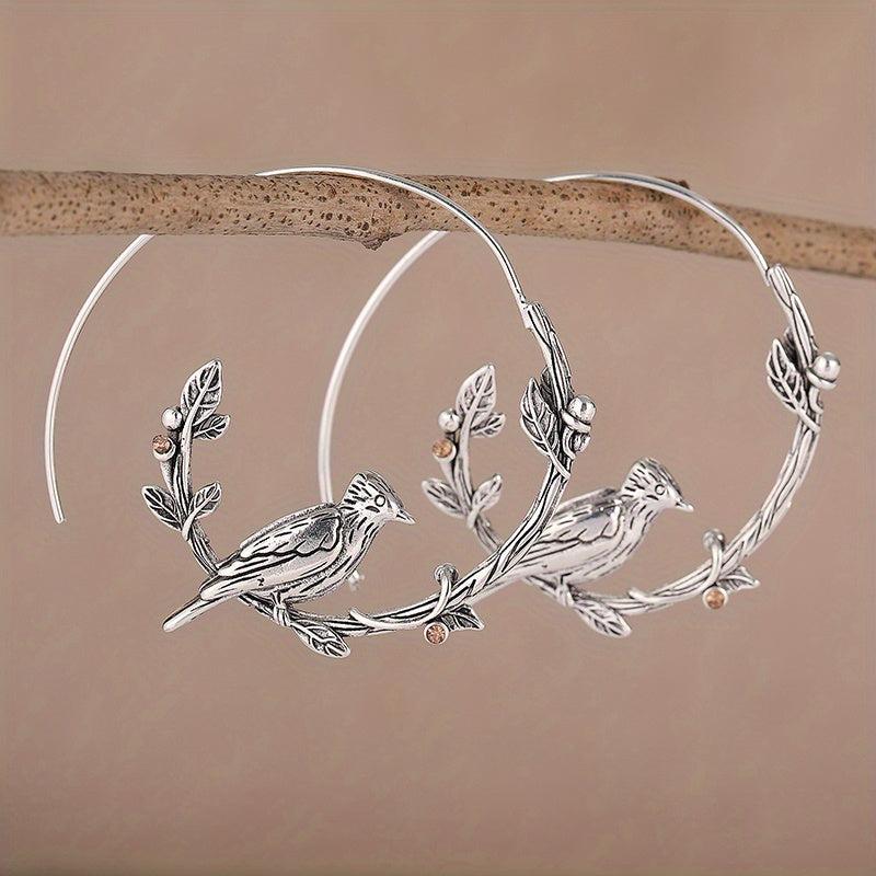 Beautifully carved flower, branch, and bird design earrings ideal for weddings, anniversaries, and birthdays. Enhance your natural beauty with these bohemian-style earrings.