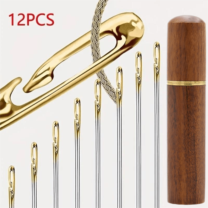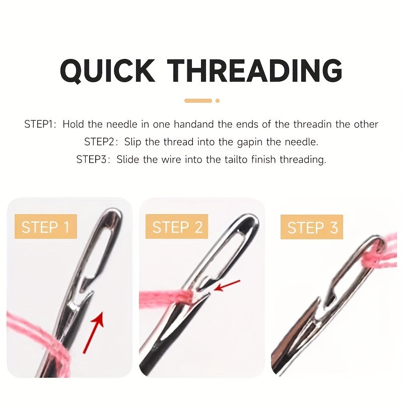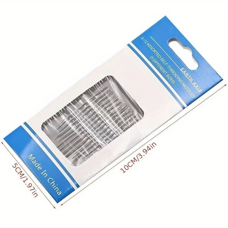 Set of self threading sewing needles for easy threading, perfect for elderly or visually impaired individuals. Large big eye design for hassle-free threading.