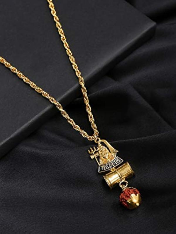 This non-precious metal pendant features Lord Shiv/Mahakal Trishul and Damru design, making it a perfect religious accessory for men and women.