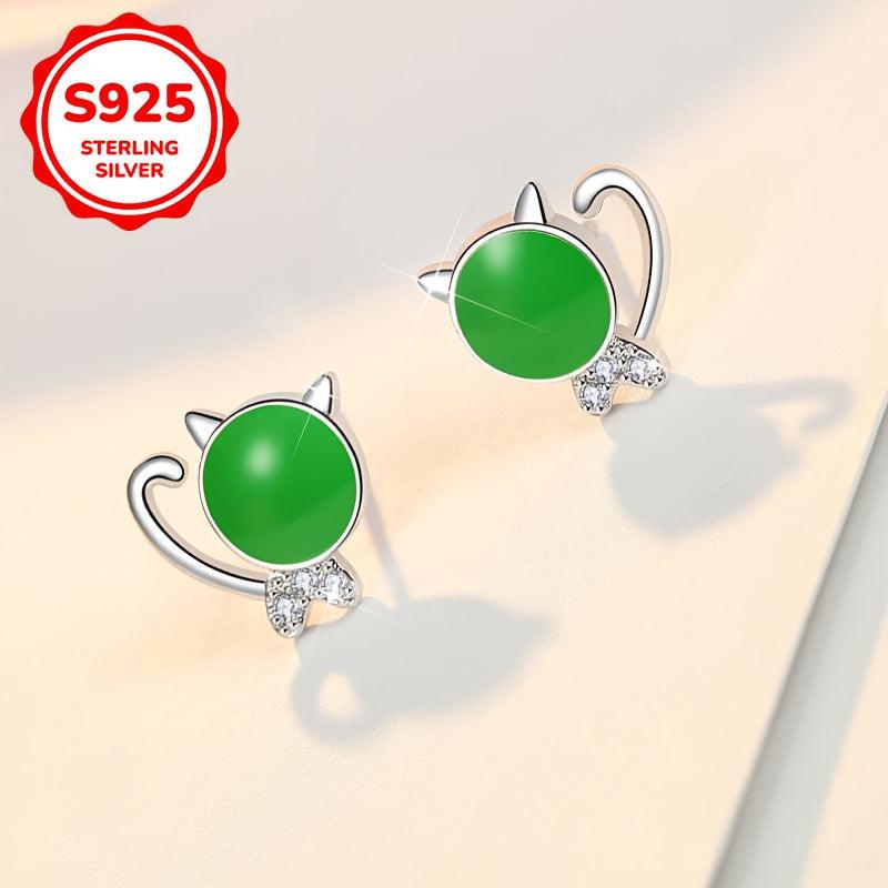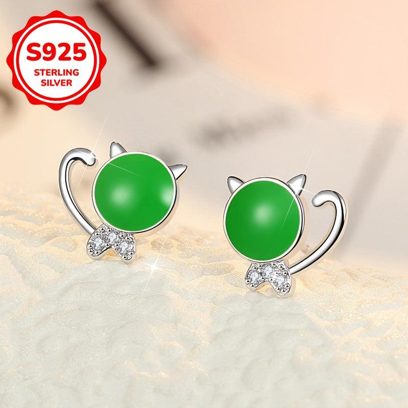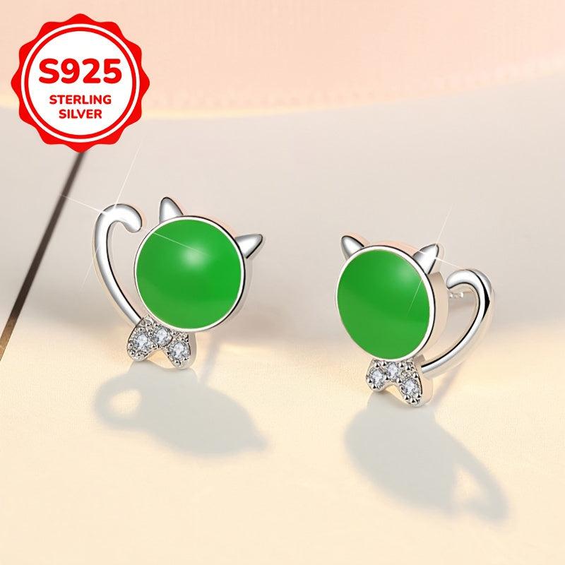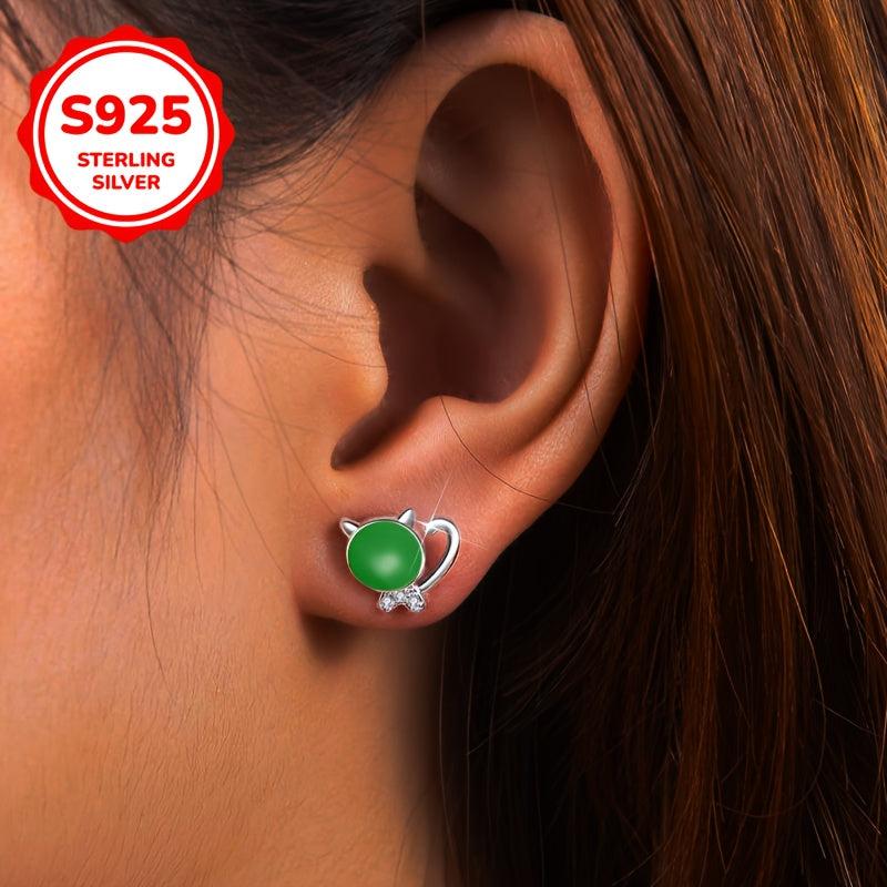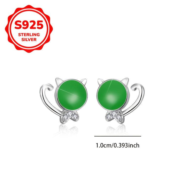 These 925 silver earrings feature cat eye stones, combining style and minimalist design. Perfect for couples, friends, or any occasion.