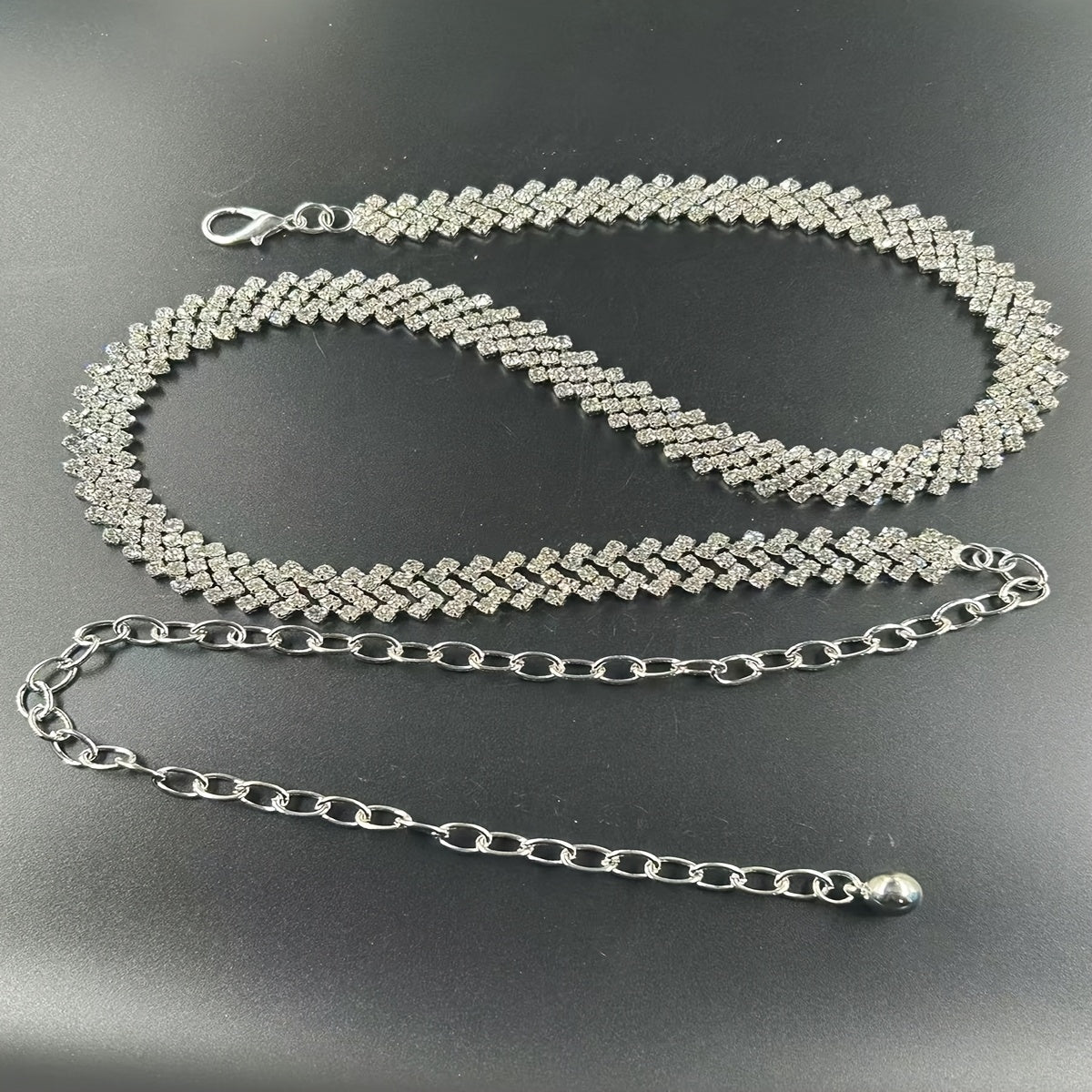 Elevate your casual outfit with this stylish rhinestone waist chain belt featuring a leaf design and dangling charm. Adjustable for the perfect fit.