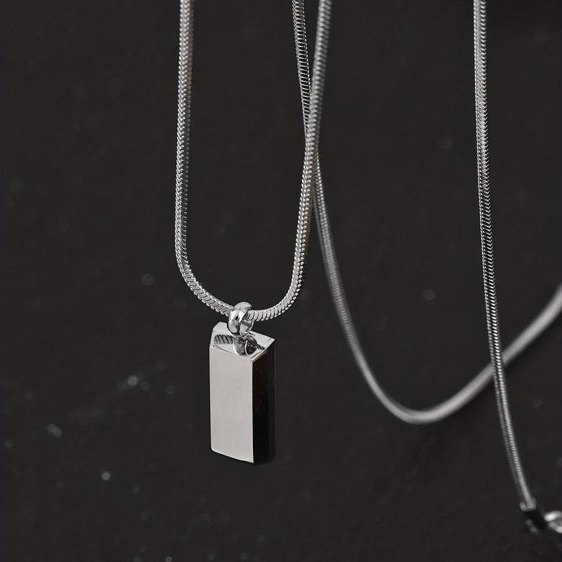 Stainless Steel Square Pendant Necklace Men Women Geometric Chain