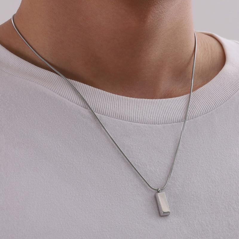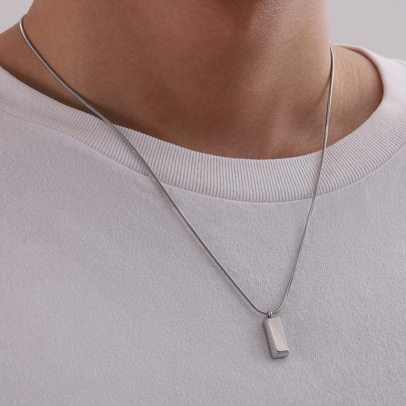 Elegant stainless steel pendant necklace suitable for both men and women. Features a stylish square pendant design that complements any outfit.