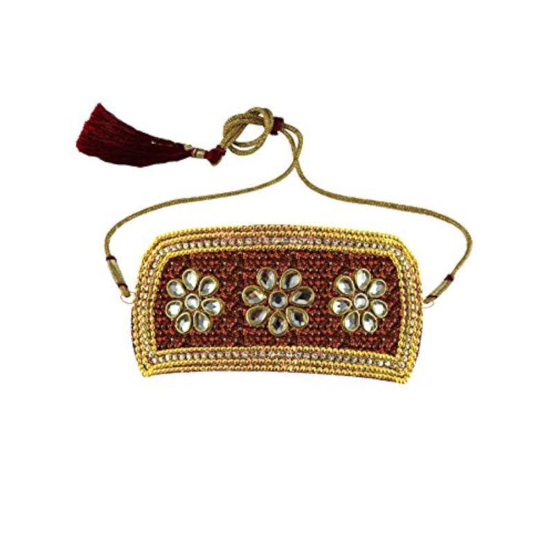 This elegant brass bajubandh features stone stud detailing and is perfect for enhancing traditional Indian outfits. It is adjustable in size for a comfortable fit.