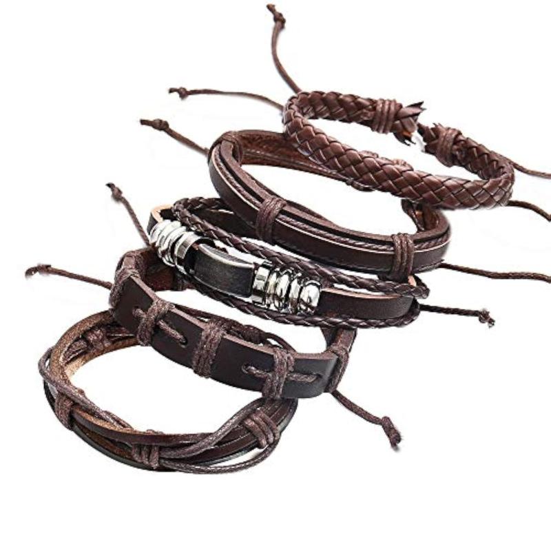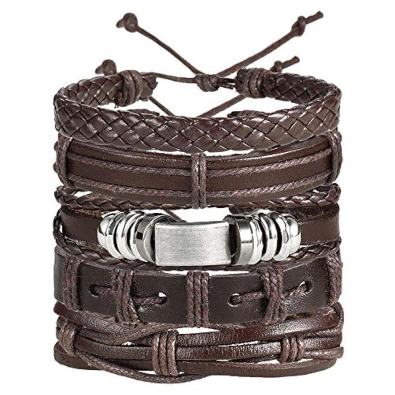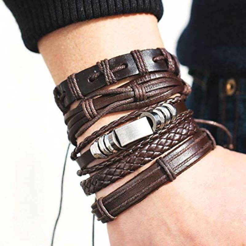 Elevate your style with this trendy bracelet combo featuring base metal strands and leather.