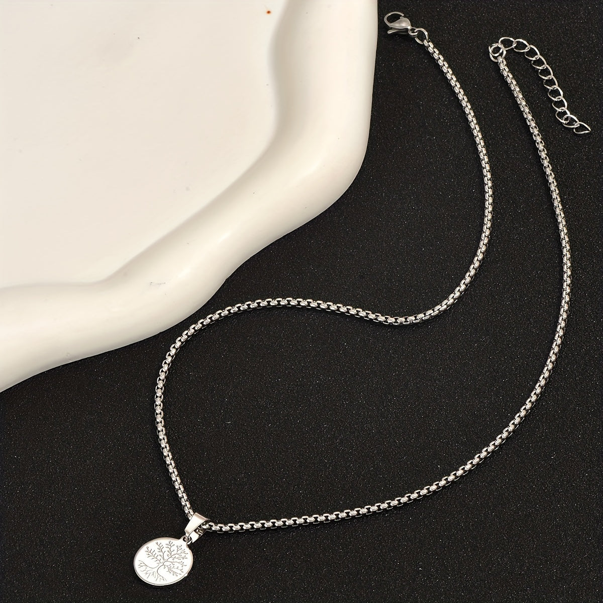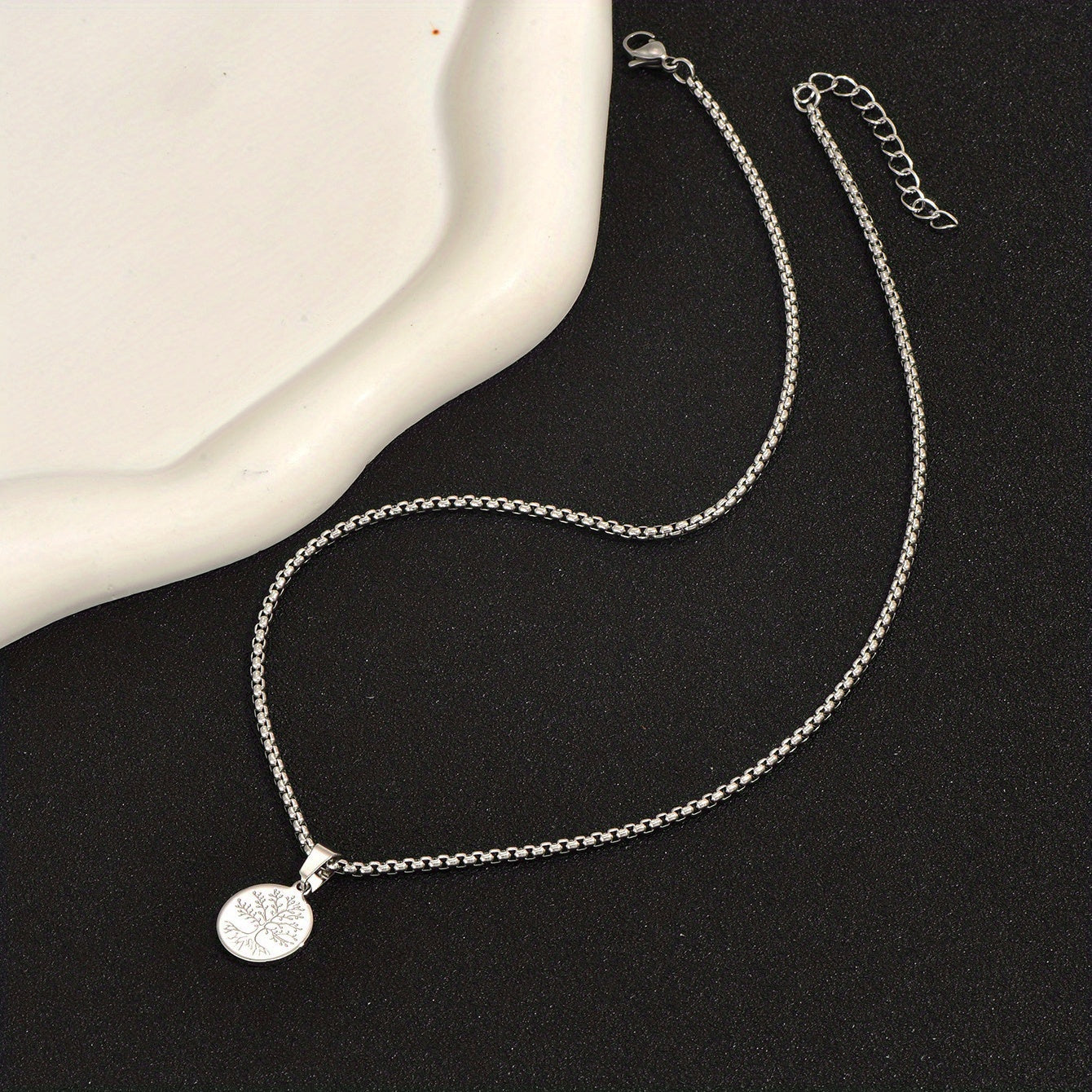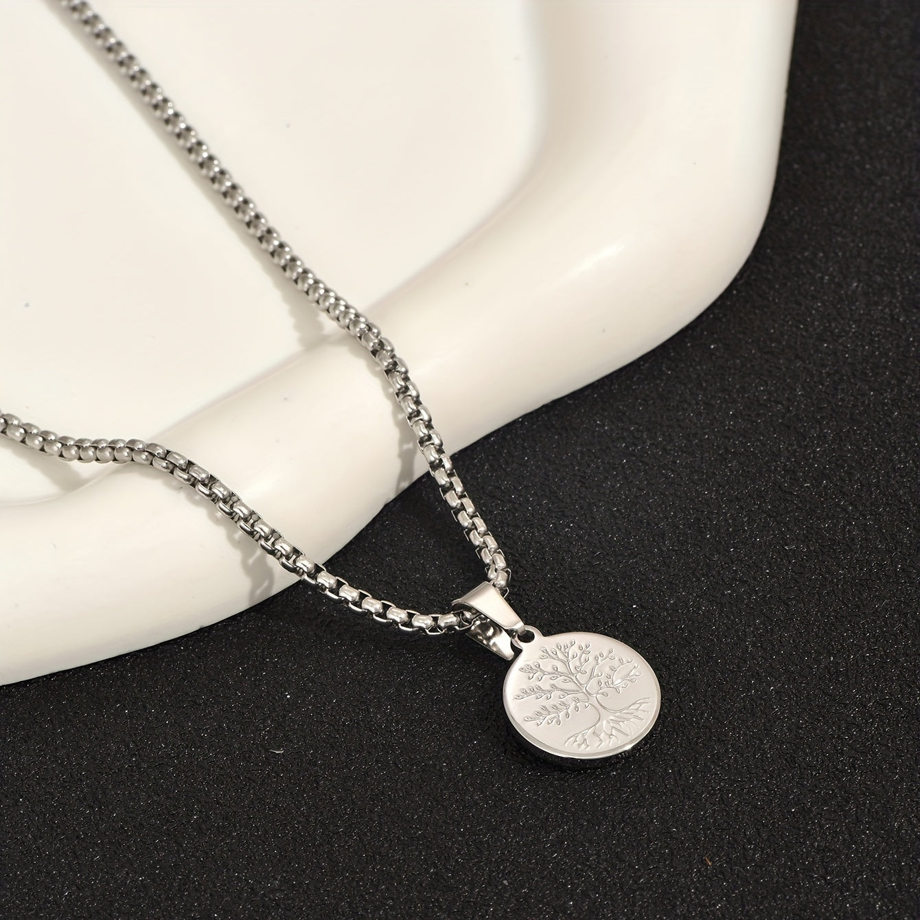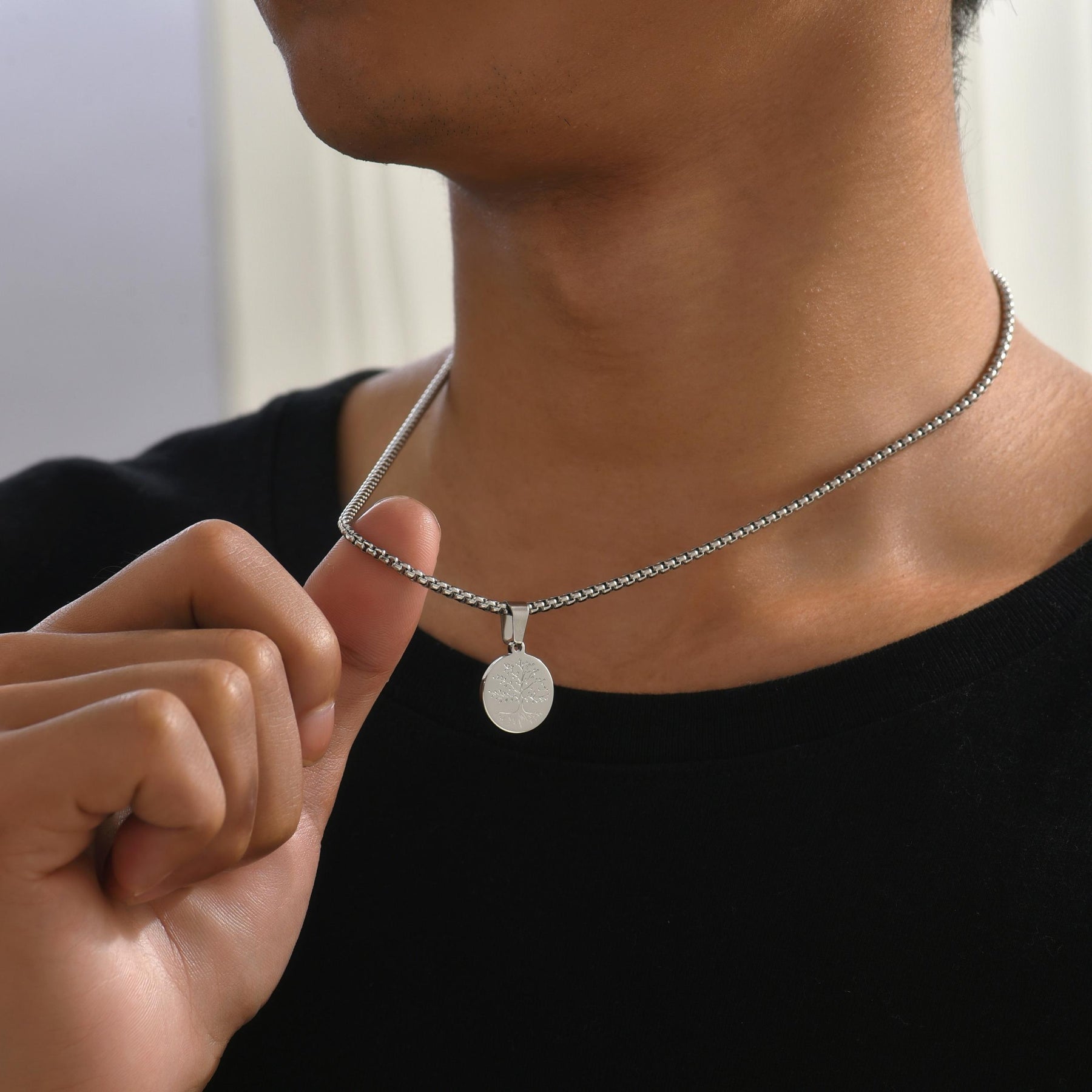 This stylish pendant necklace features a Tree of Life design crafted in sterling silver, perfect for men's fashion statement.