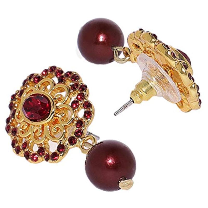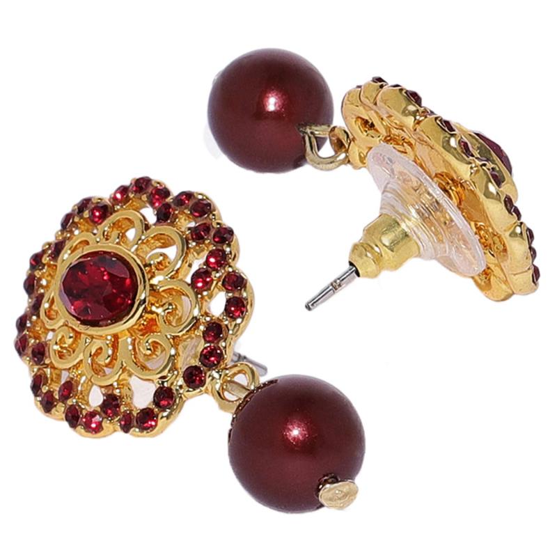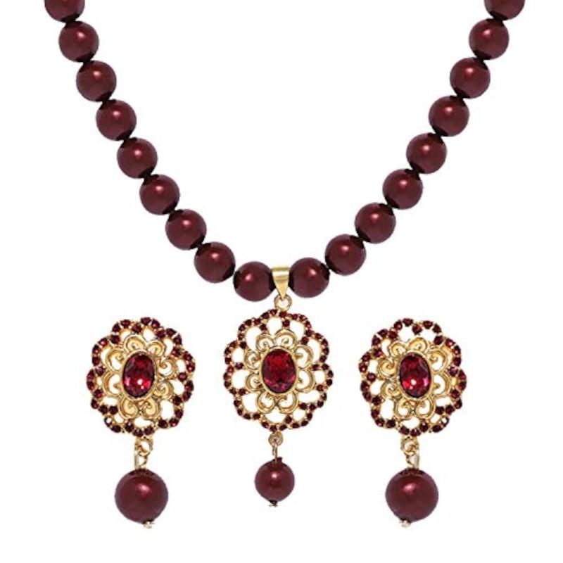 This stunning necklace set features a beautiful combination of marron crystals and artificial pearls, perfect for adding a touch of elegance to any outfit.