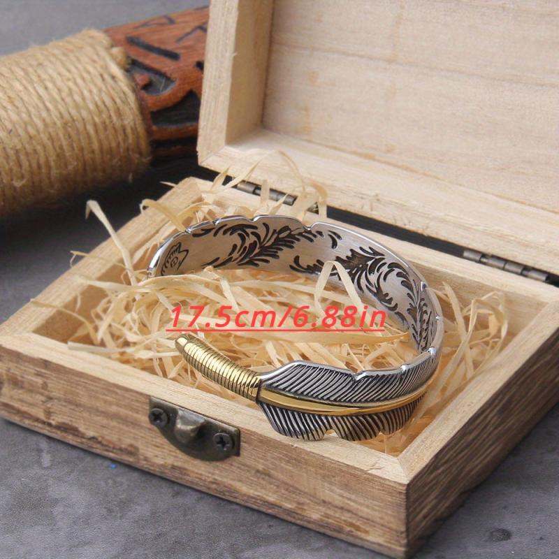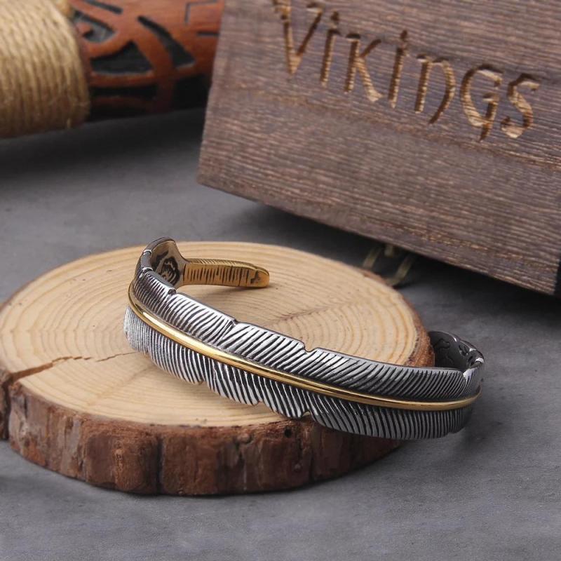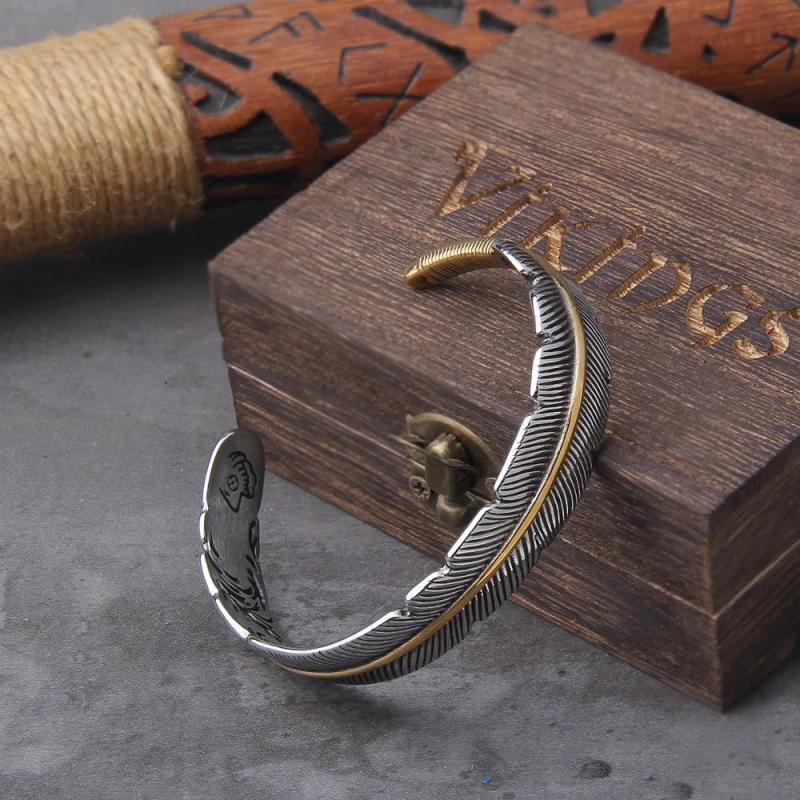 Embrace the Viking inspiration with this adjustable retro bracelet. Made of zinc alloy, this open front piece features a feather design, making it a handsome accessory for men. Give it as a unique gift to a loved one.