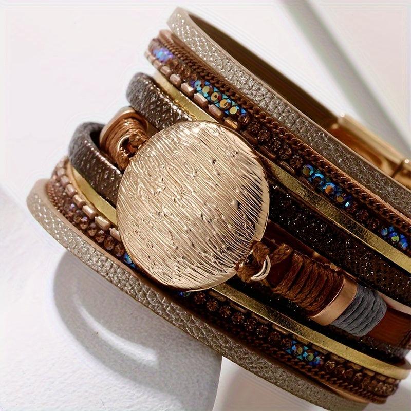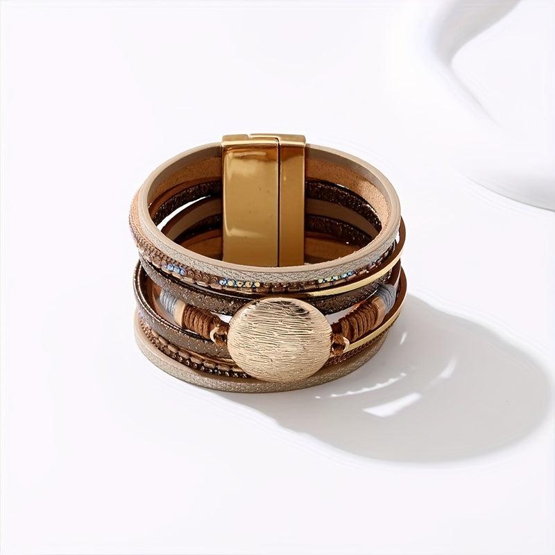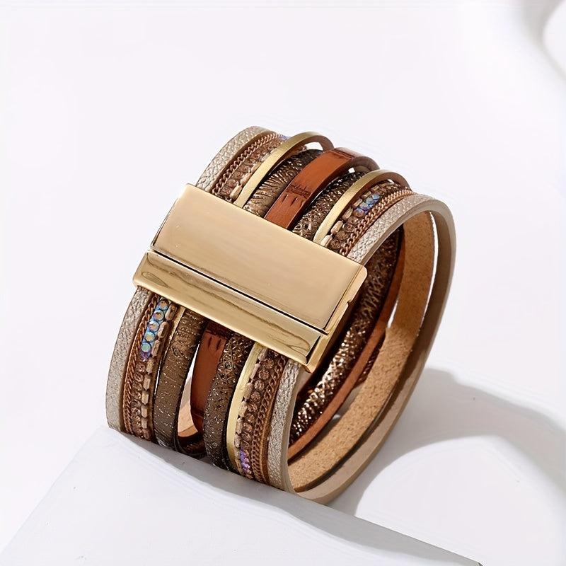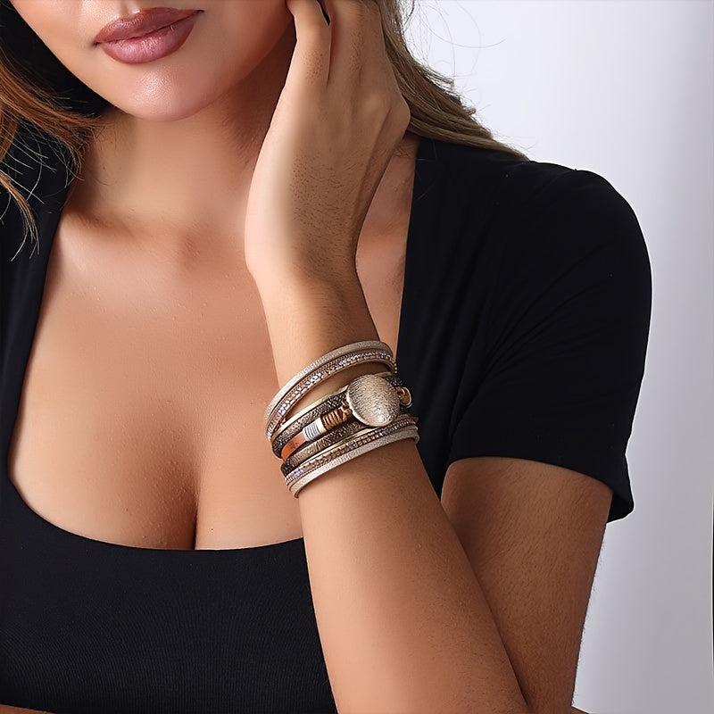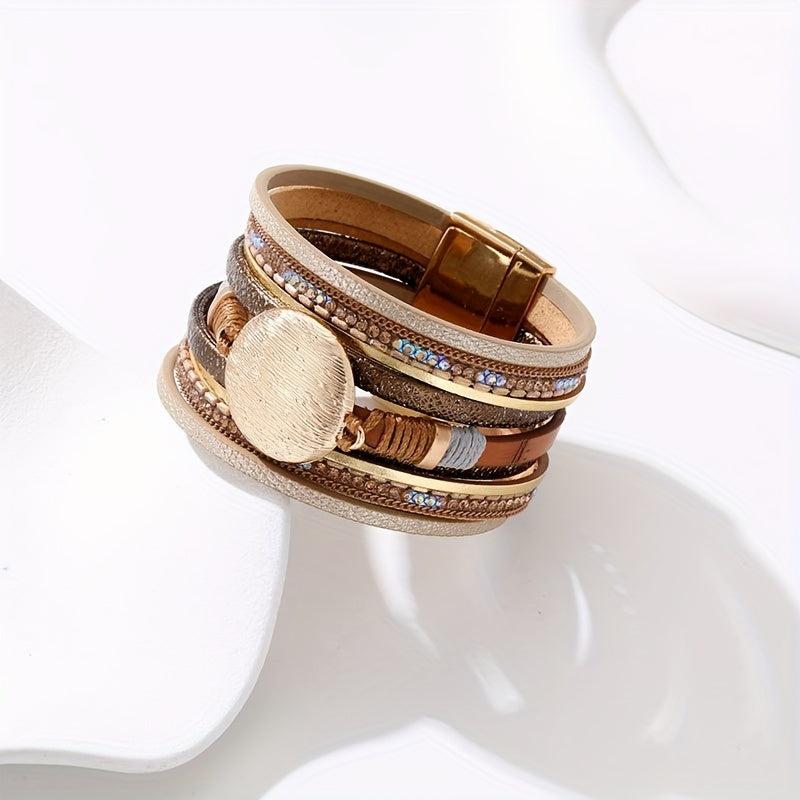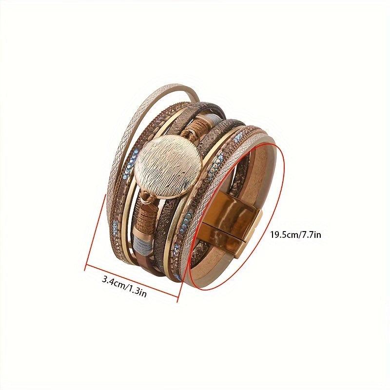 Add a touch of bohemian flair to your outfits with this vintage PU leather bracelet. It features multiple layers and a convenient magnetic buckle, perfect for daily wear and holiday styling.