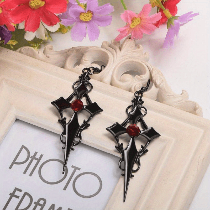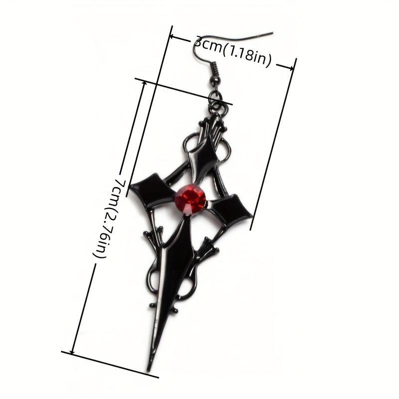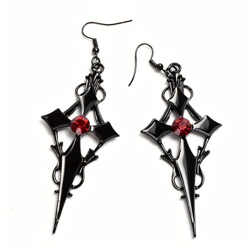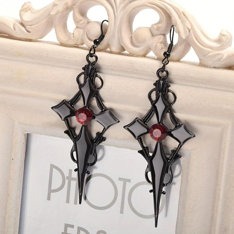 Add a touch of vintage gothic style to your look with these cross-shaped red stone earrings. Perfect retro jewelry accessories for men and women.