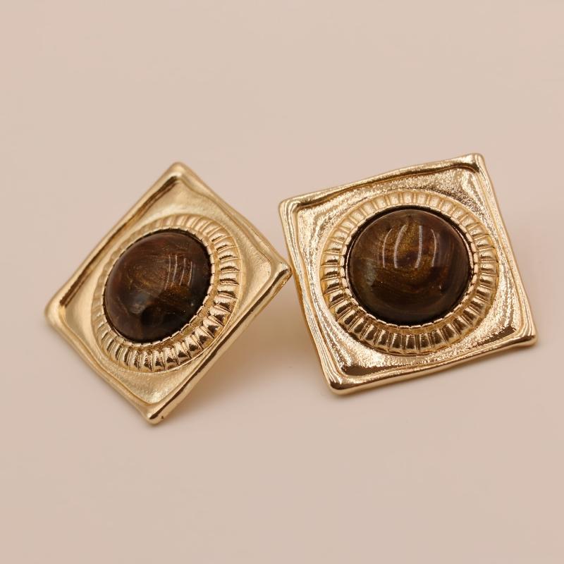These vintage women's earrings are perfect for daily wear, parties, or as a gift for your mother. The 14K golden plated design with resin and zinc alloy mosaic detailing adds a touch of elegance to any outfit, making it suitable for all seasons.