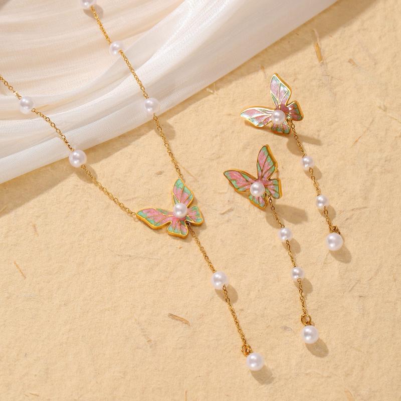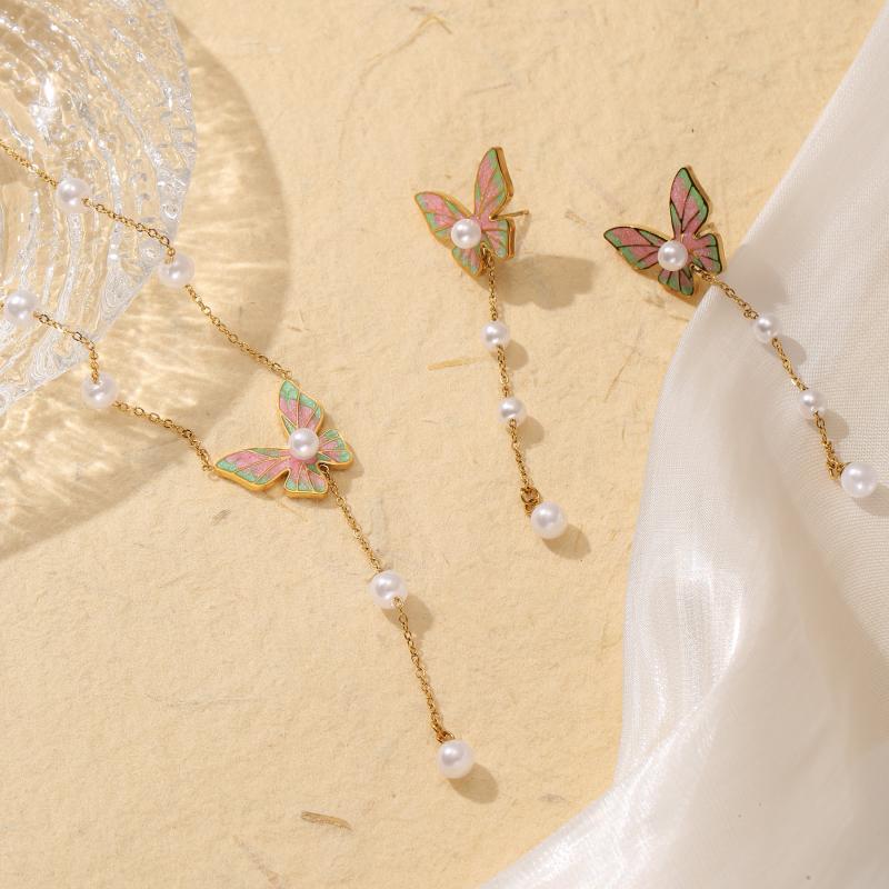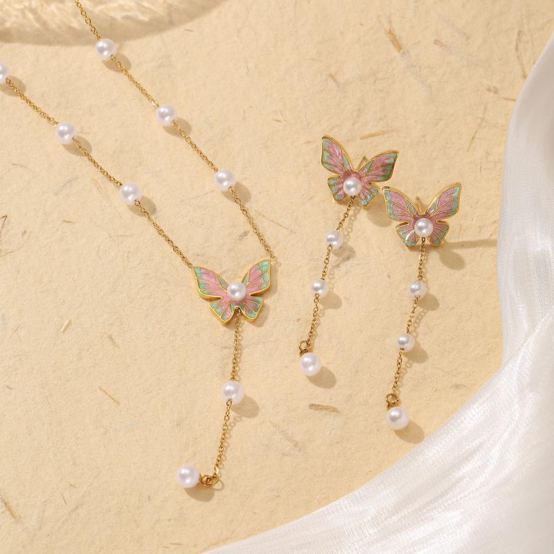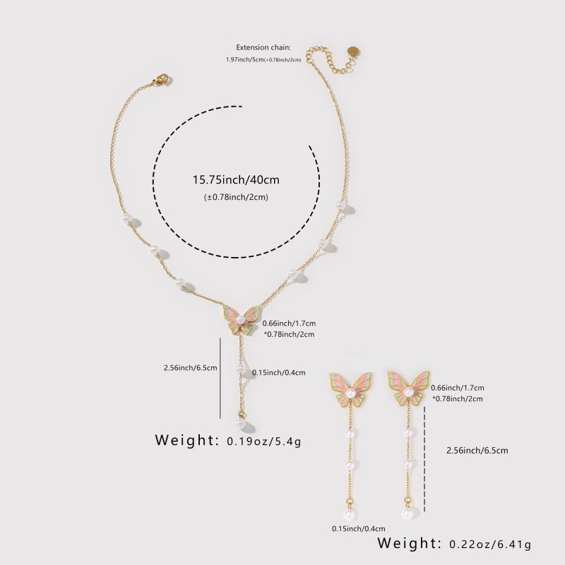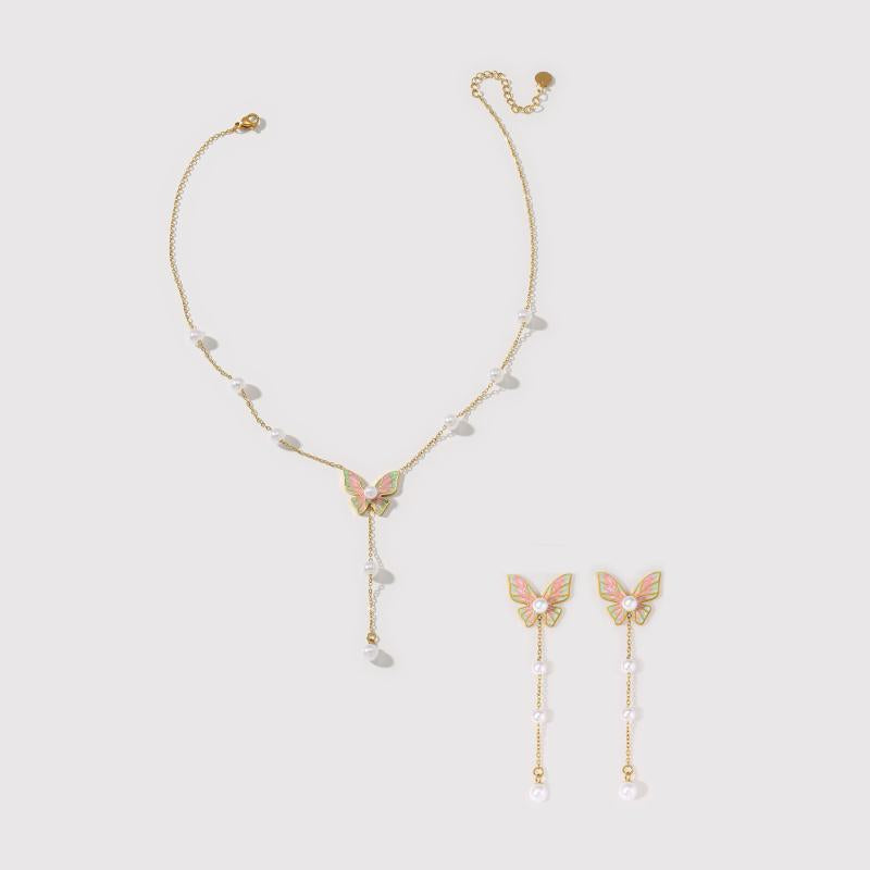 Elegant 2pcs set of necklace and bracelet with butterfly tassel design, made of high-quality stainless steel. Perfect for daily wear and vacation outings.