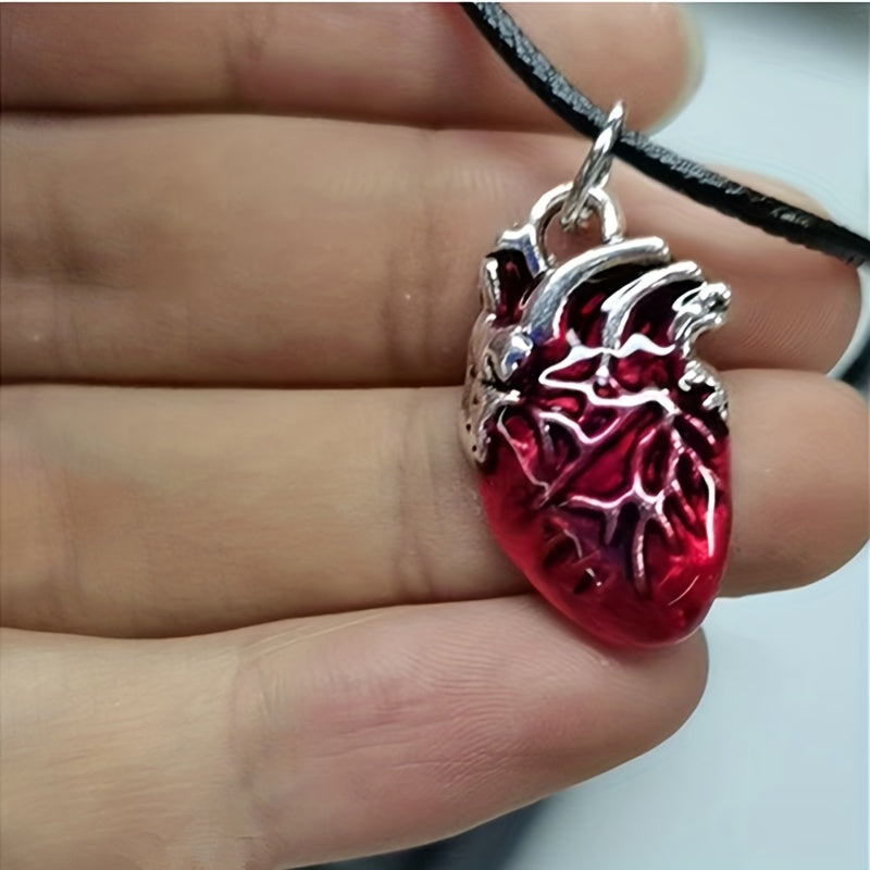 Add a touch of gothic flair to your Halloween attire with this red bloody anatomical heart pendant necklace. Perfect for Halloween parties or spooky occasions.