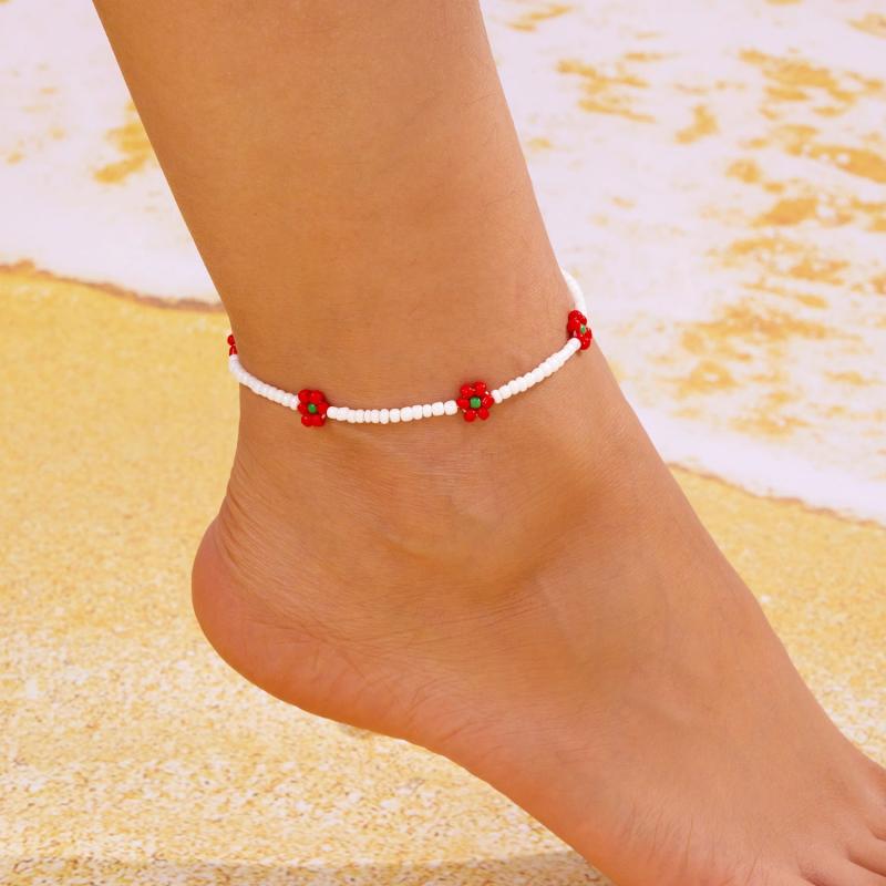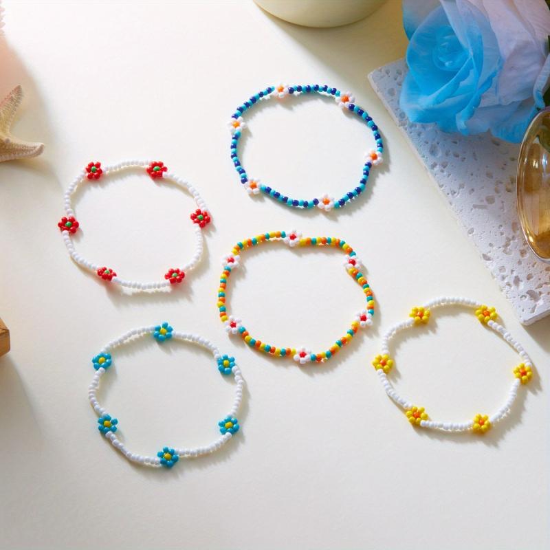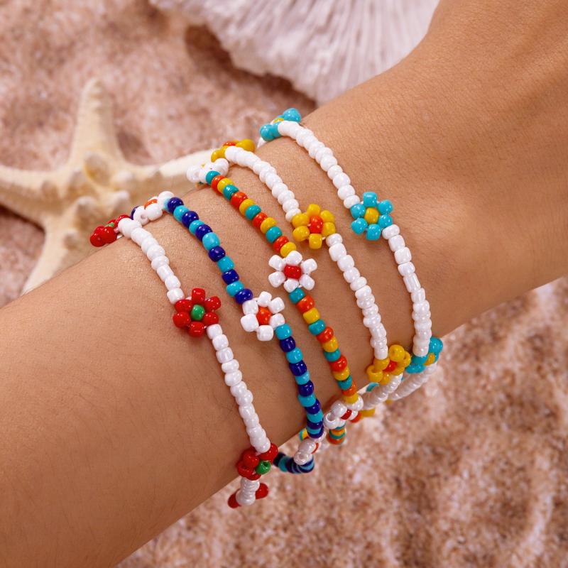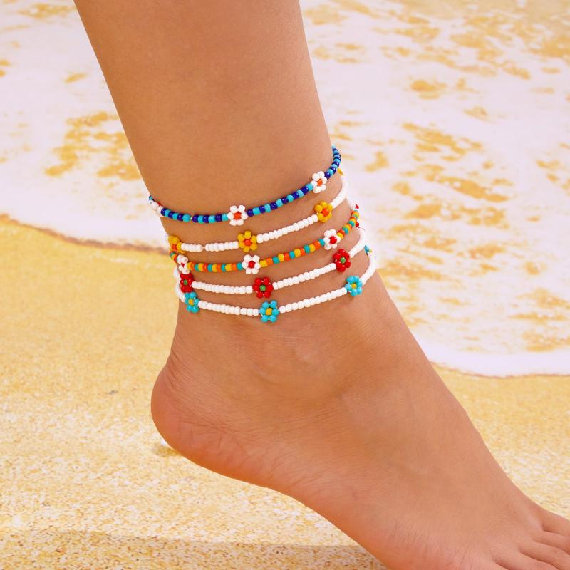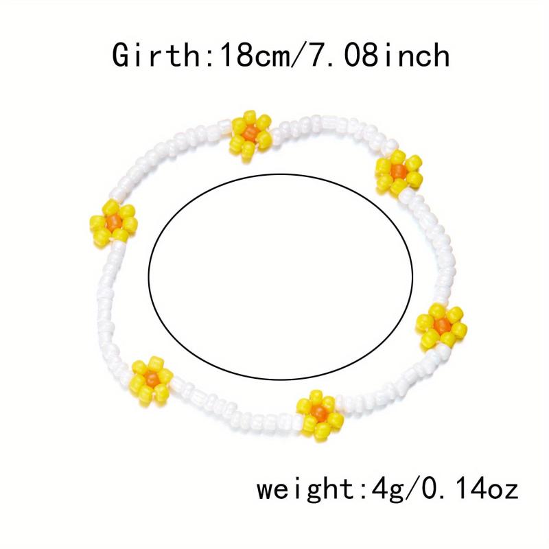 Elevate your style with this colorful beaded anklet and bracelet set, perfect for beach vacations or daily wear. The bohemian design features daisy charms that add a whimsical touch.