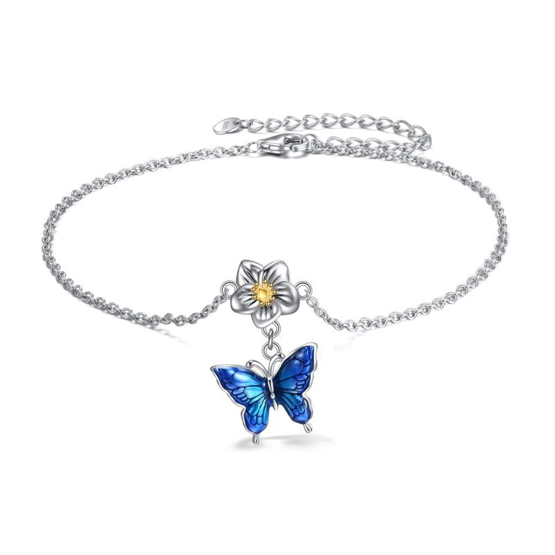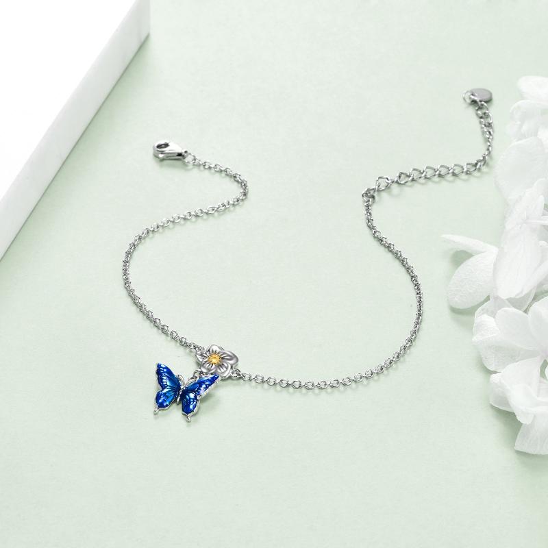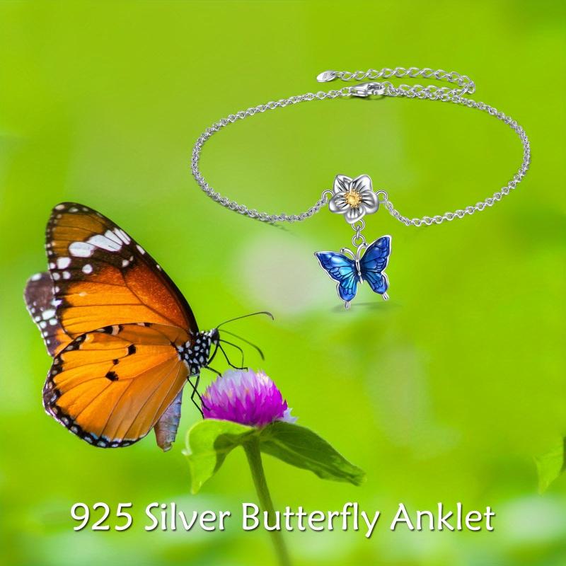 This charming butterfly anklet features a delicate design with daisy flower accents, made of high-quality sterling silver. Perfect for women and teen girls.