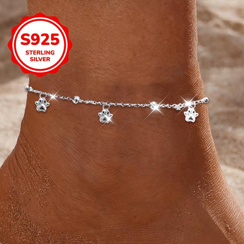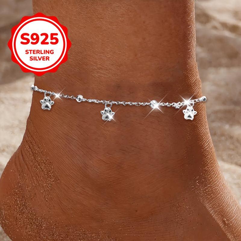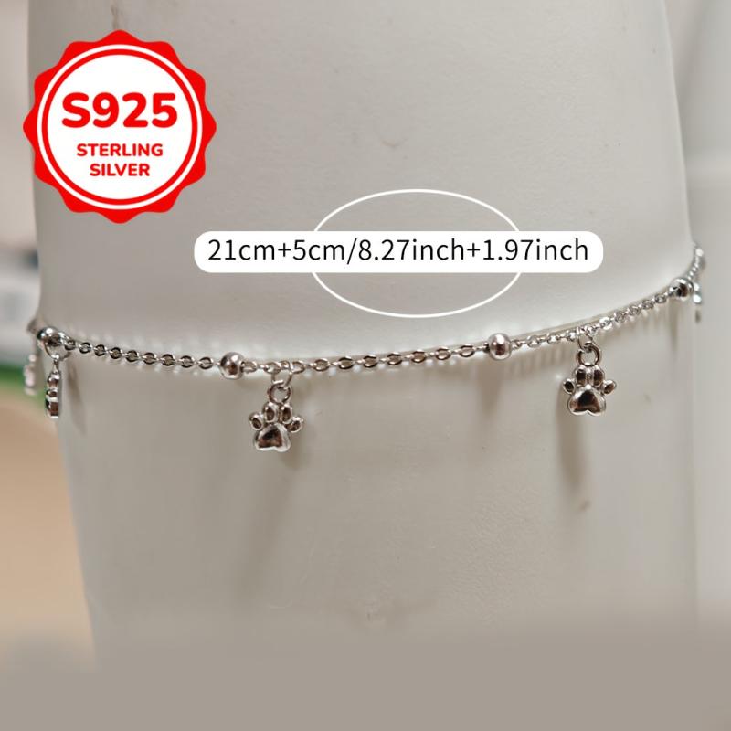 This high-end foot chain features an adorable animal footprint design, perfect for a Valentine's Day gift. Made of S925 silver, it is adjustable and versatile for both hands.