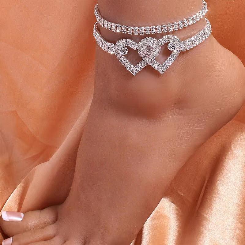 This fashionable foot accessory features a double heart design, perfect for adding a touch of elegance to your beach vacation or daily party outfits. It is versatile and can be worn on various occasions.