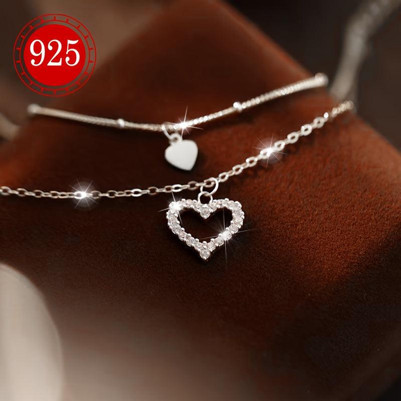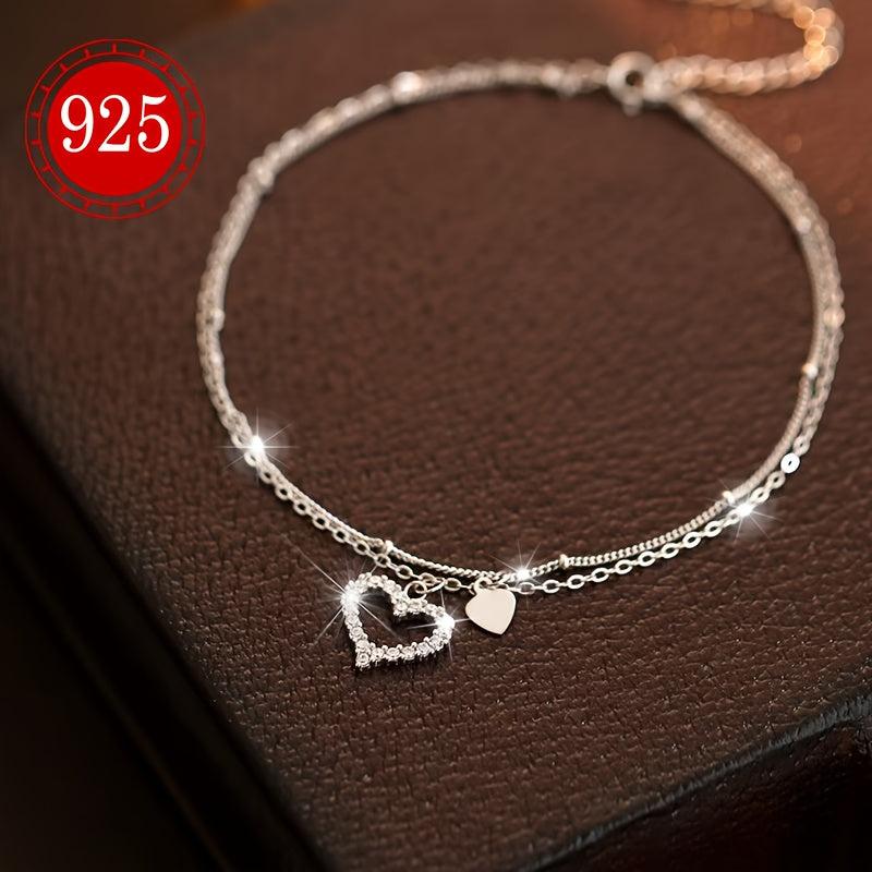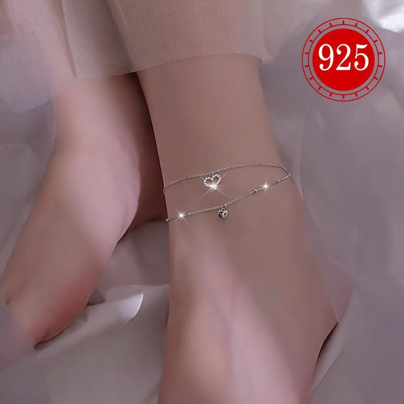 Add a touch of glamour to your summer beach look with this double-layered anklet featuring heart-shaped charms. Made of S925 silver to minimize allergic reactions, this anklet is perfect for everyday wear.