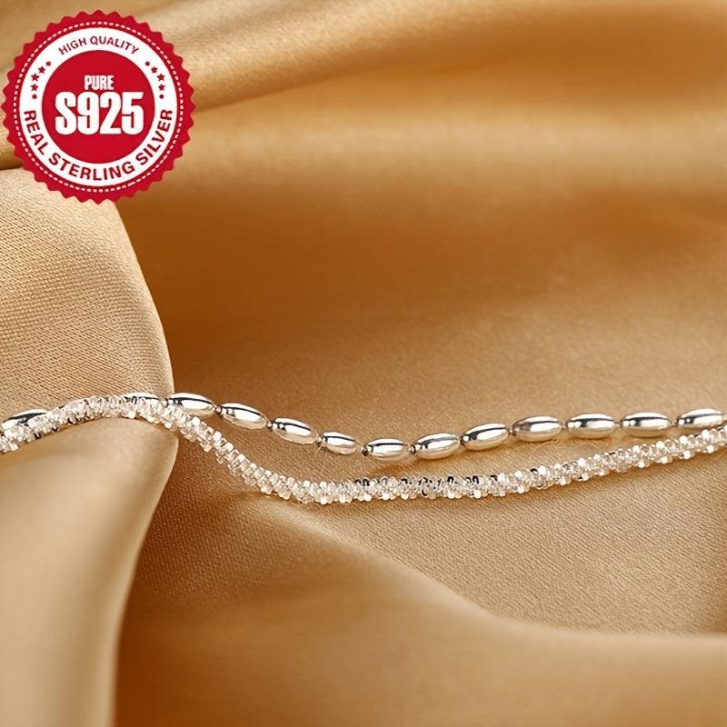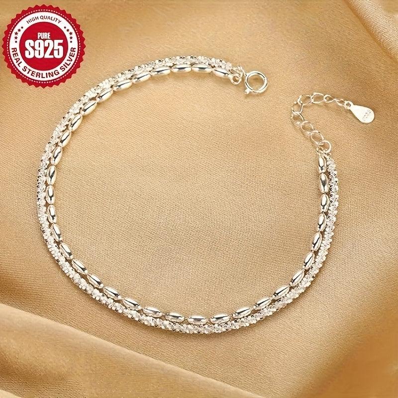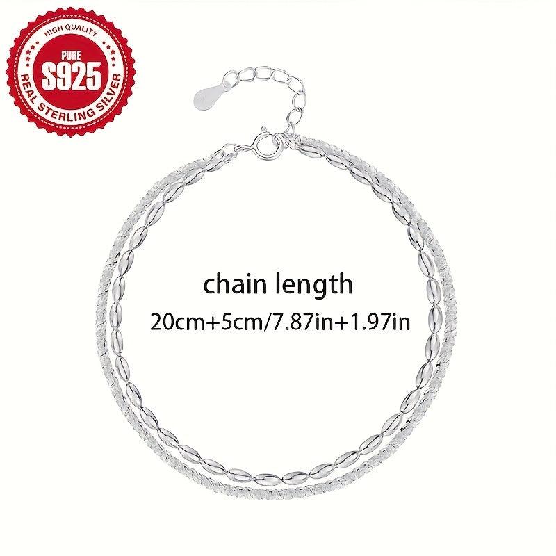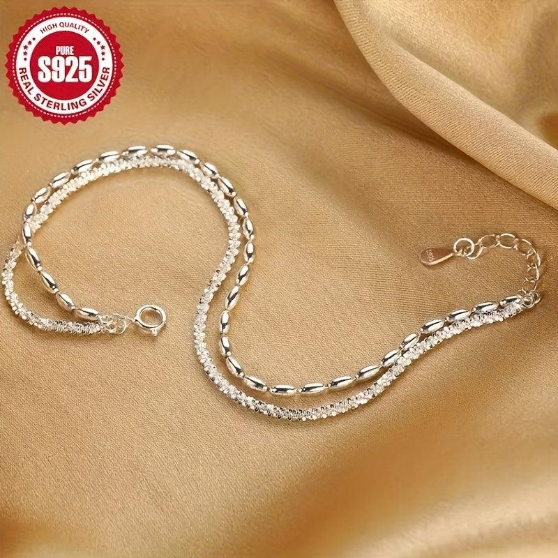 This S925 silver ankle bracelet features a double layer design with sparkling crystals, making it ideal for beach vacations and parties. It is low allergy and makes a perfect gift for women.