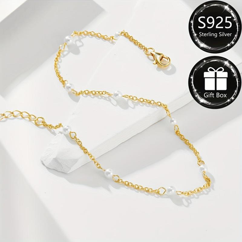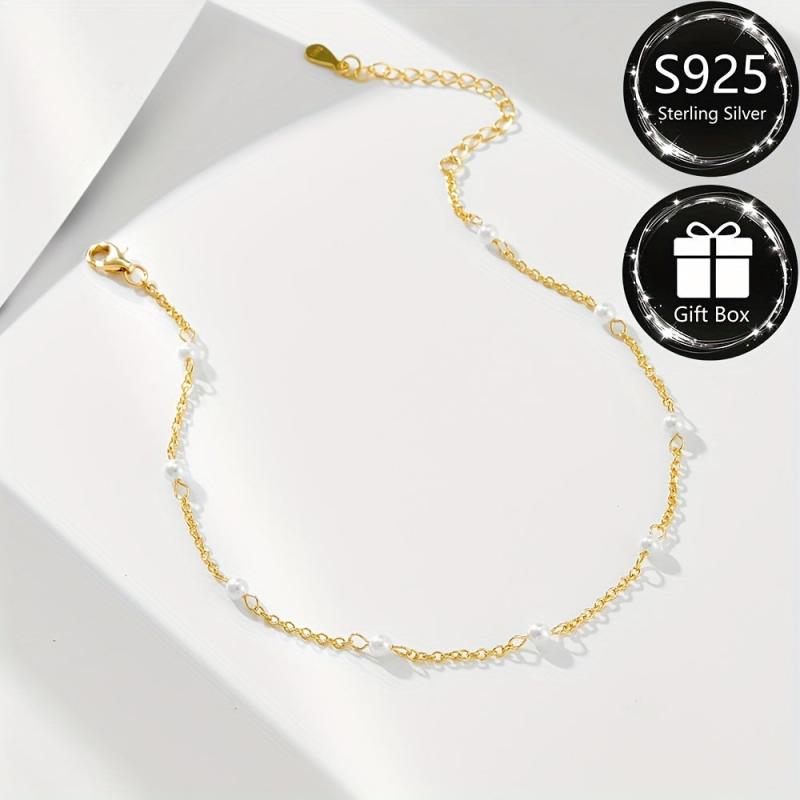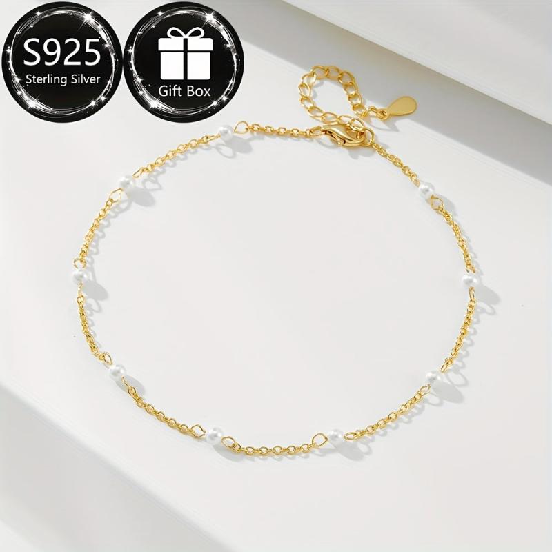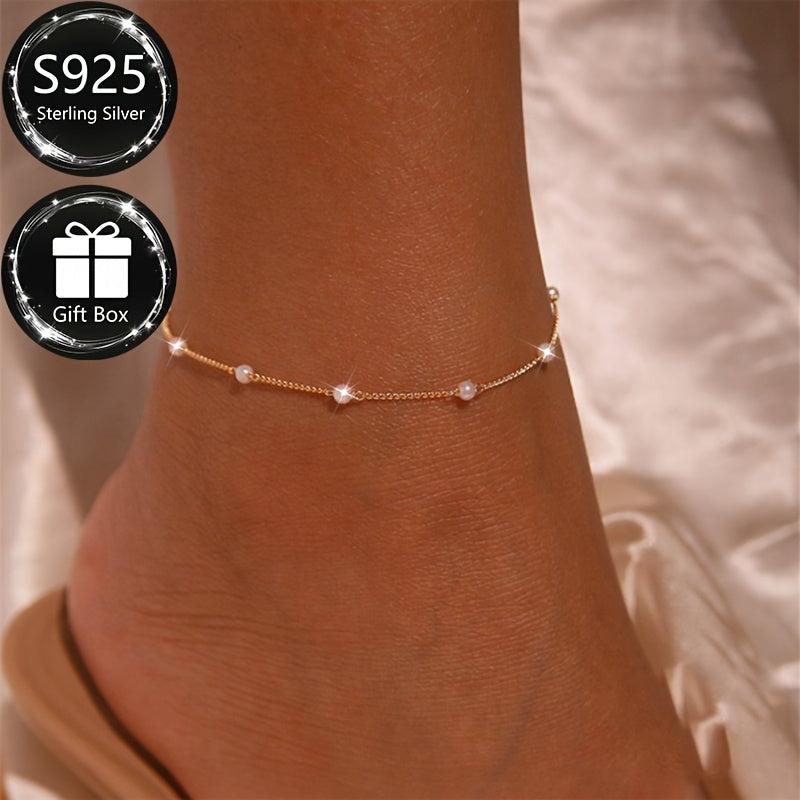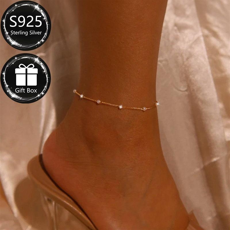 This ankle bracelet is made of S925 sterling silver with sparkling beads, perfect for summer parties and vacations. It is waterproof and hypoallergenic, making it ideal for daily wear. Great gift for women.