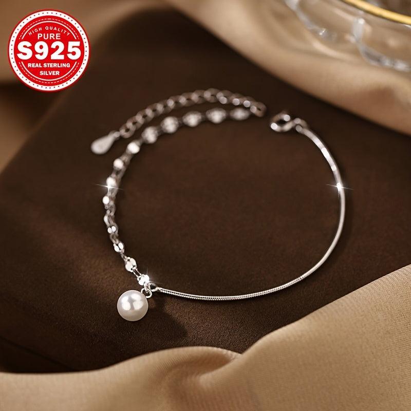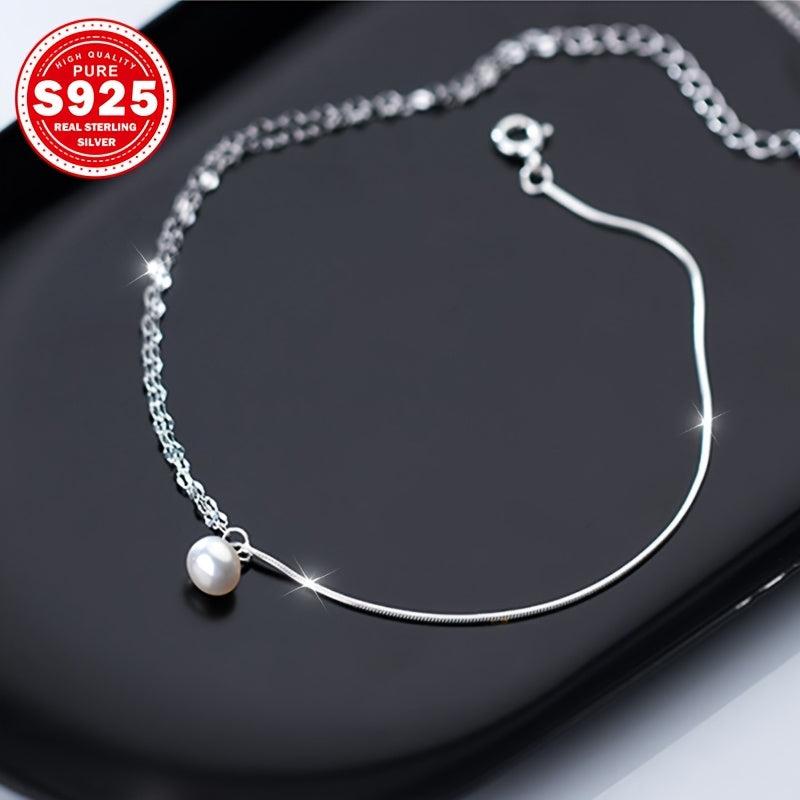 This anklet is made of hypoallergenic S925 silver, featuring a double layer design with heart sequin and pearl accents. It is lightweight at only 1.72g, making it ideal for music festivals, vacations, and Easter celebrations.