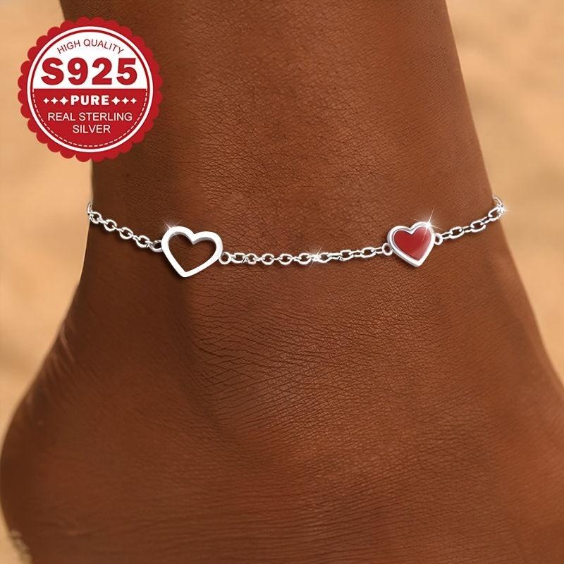 Add a touch of elegance to your ankle with this double heart anklet. Made with S925 sterling silver, it's perfect for summer beach vacations and everyday wear. Ideal as a Valentine's gift.