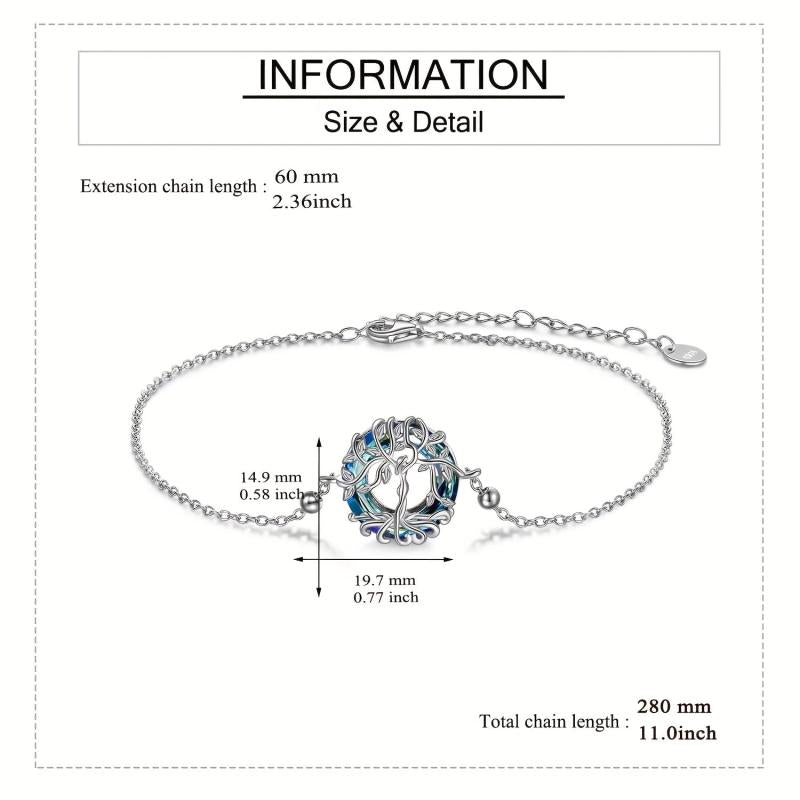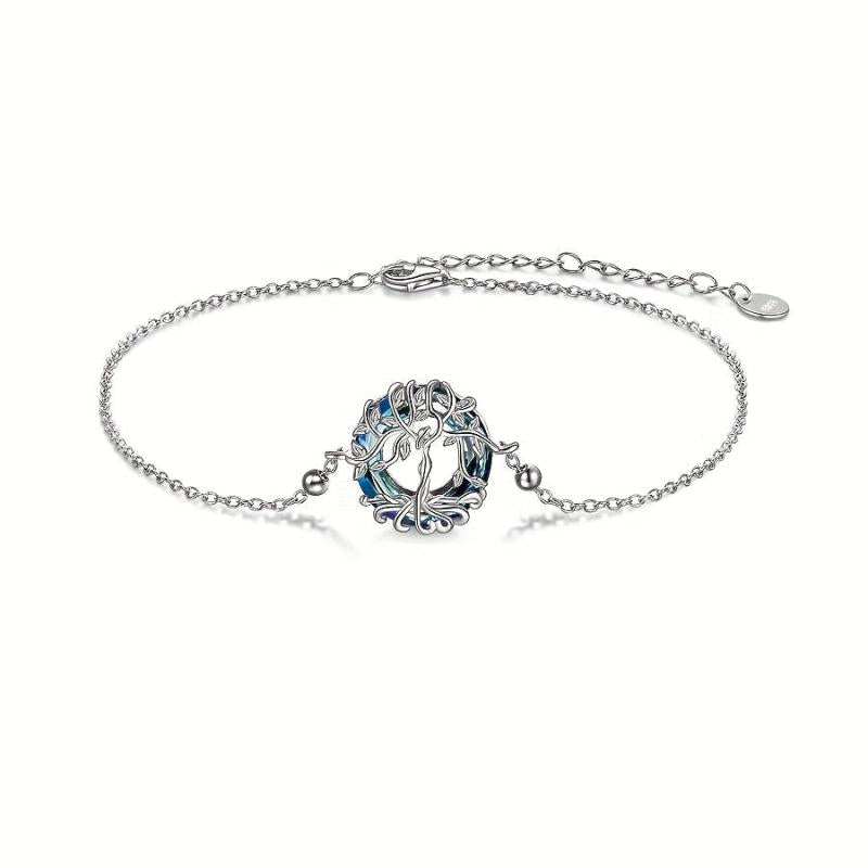 Beautifully crafted Tree of Life anklet made of sterling silver and artificial crystal, perfect for women and girls.