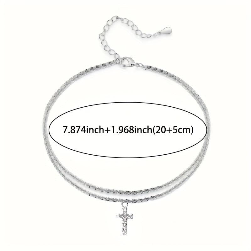 This stunning ankle bracelet features a double layer glitter chain design with a real sterling silver cubic zirconia cross charm. The bracelet is hypoallergenic, lightweight, and perfect for everyday wear.